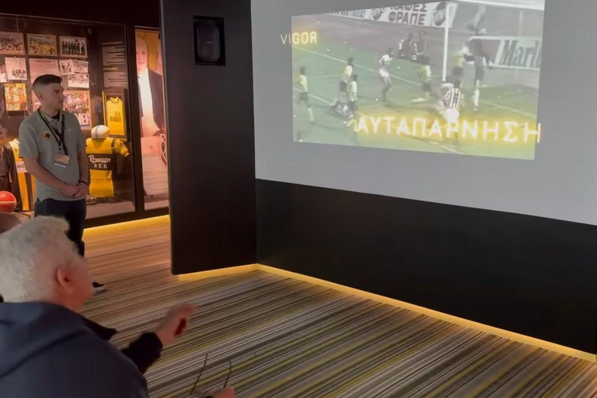 Ο Στέλιος Μανωλάς πήγε στο Μουσείο της ΑΕΚ στην OPAP Arena και είδε τη σπουδαία επέμβασή του στο ντέρμπι τίτλου με τον Ολυμπιακό