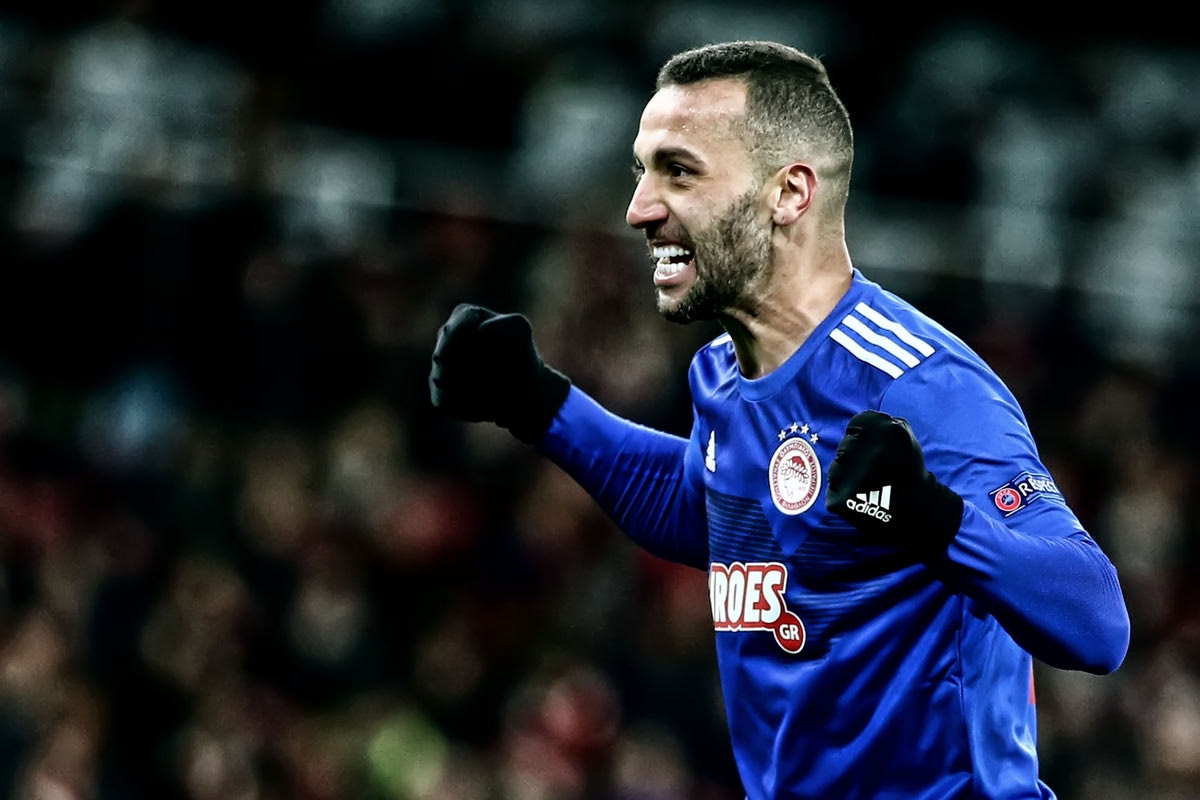 Ο Γκιλιέρμε του Ολυμπιακού πανηγυρίζει έπειτα από την πρόκριση κόντρα στην Άρσεναλ για τη φάση των 32 του Europa League 2019-2020 στο "Έμιρεϊτς", Λονδίνο | Πέμπτη 27 Φεβρουαρίου 2021 INTIME SPORTS