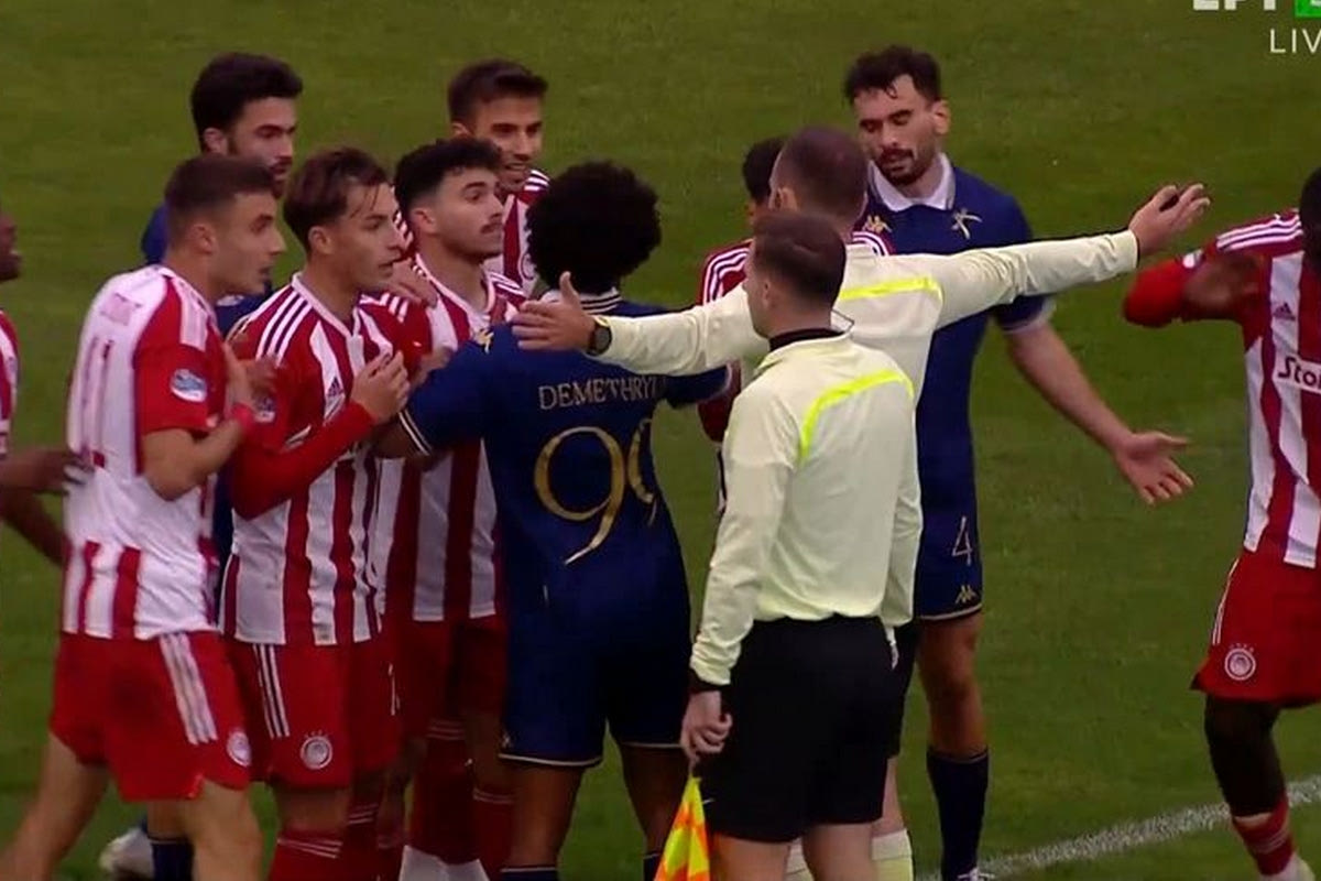 Διαμαρτυρίες και διαπληκτισμοί μεταξύ των παικτών του Ολυμπιακού Β' και Athens Kallithea Print Screen