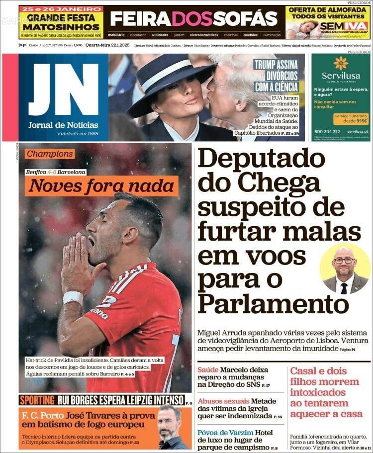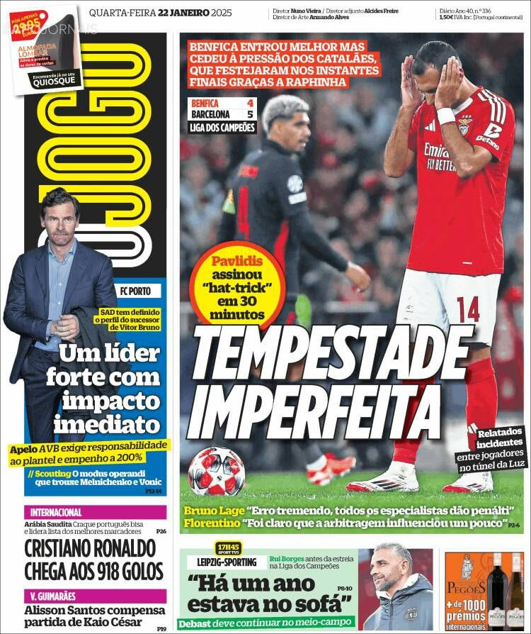 Πρόκειται λοιπόν, για τον μεγάλο πρωταγωνιστή του αγώνα, ο οποίος όπως ήταν αναμενόμενο είχε τη δική του θέση στα πορτογαλικά πρωτοσέλιδα της Τετάρτης (22/1).