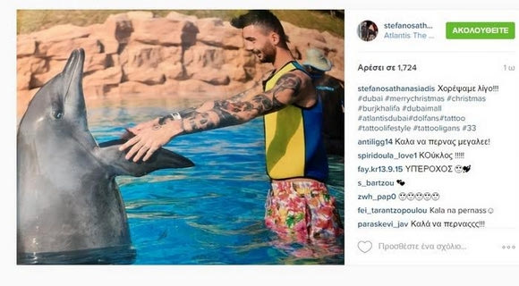 Ο Στέφανος Αθανασιάδης περνά μέρες χαλάρωσης στο Ντουμπάι, παρέα με τη σύντροφό του, Δώρα Γουγούση. Ο επιθετικός του ΠΑΟΚ που αύριο κλείνει 27 χρόνια ζωής απολαμβάνει τα μπάνια του και ορισμένες ξεχωριστές εμπειρίες, όπως το να χορεύει με δελφίνια.
