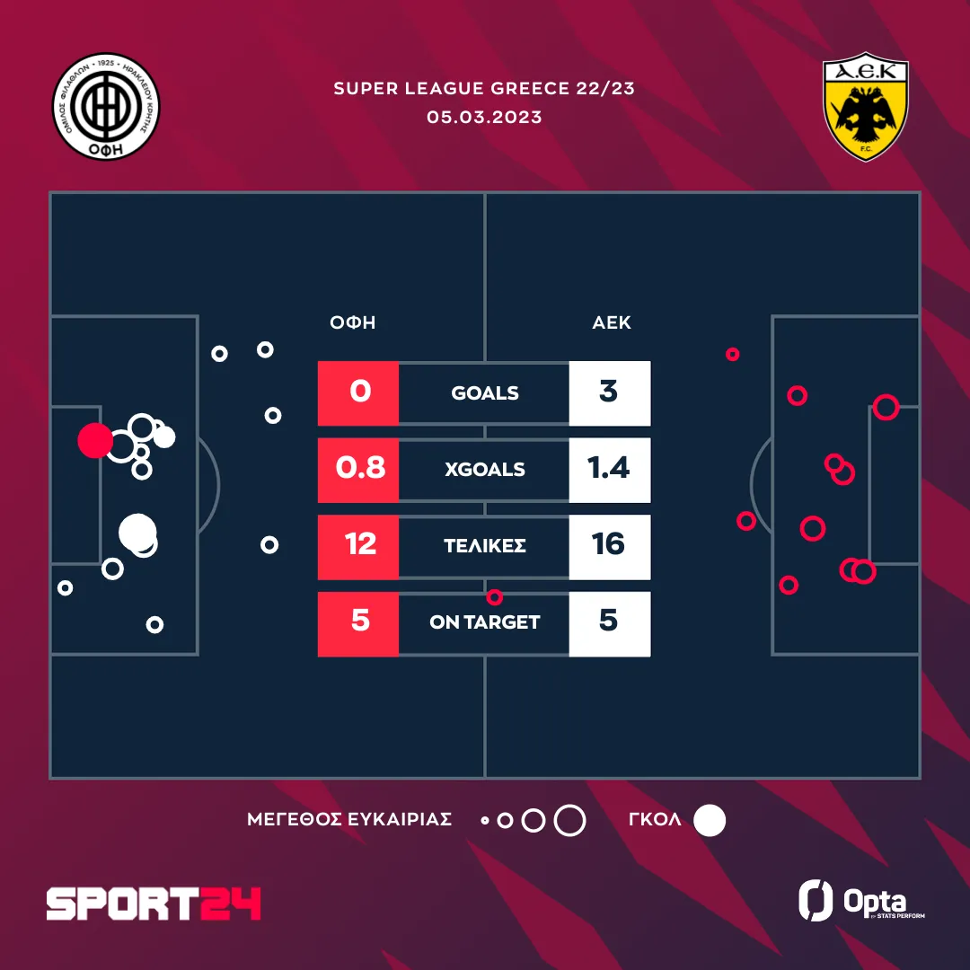 Κάπως έτσι στη βαθμολογία, η ΑΕΚ έφτασε τους 56 πόντους και πέρασε στην κορυφή πάνω από τον Παναθηναϊκό, ο οποίος αντιμετωπίζει τον Παναιτωλικό την Δευτέρα. Ο ΟΦΗ έμεινε στην 9η θέση με 26 βαθμούς.