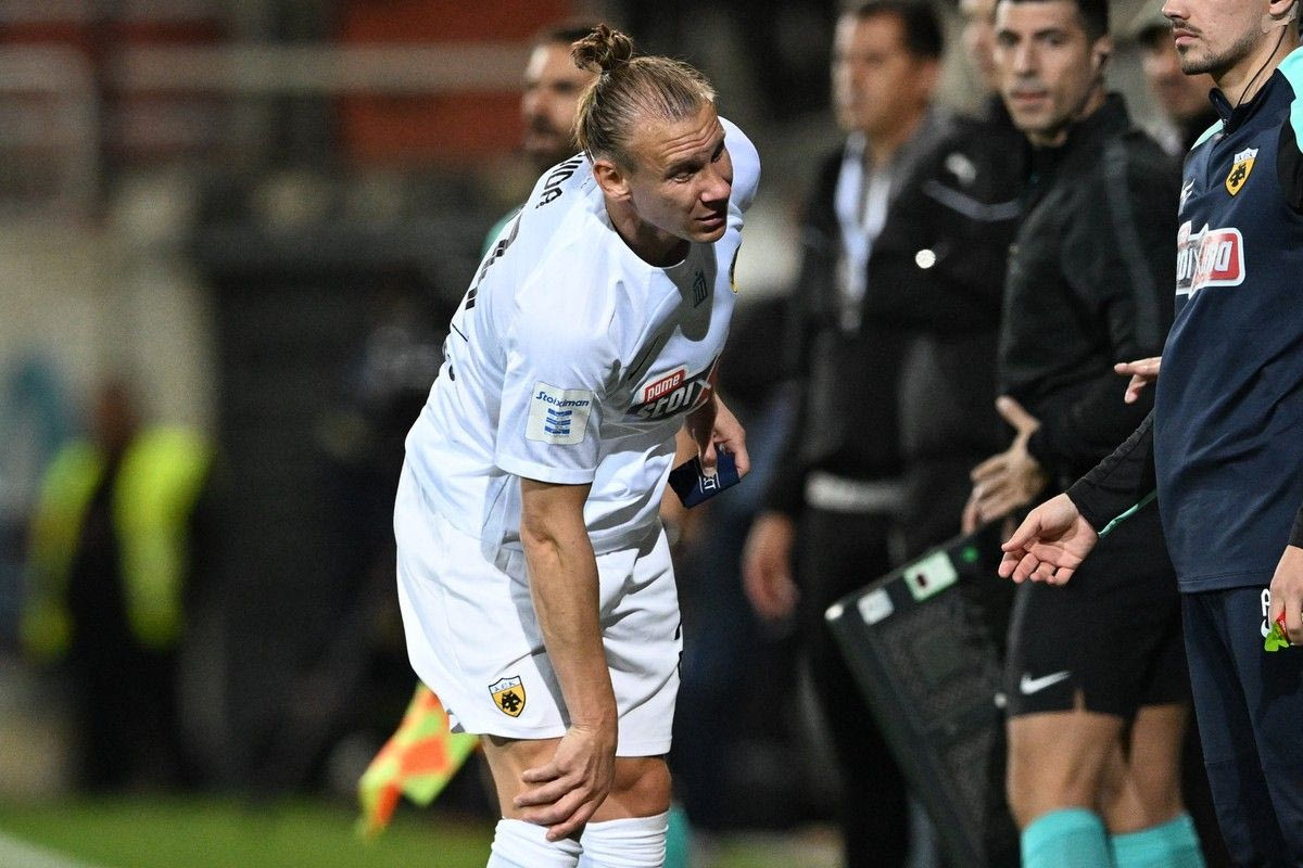 Μετά τον Λάζαρο Ρότα, η ΑΕΚ χρειάστηκε να κάνει και δεύτερη αναγκαστική αλλαγή στο πρώτο ημίχρονο του αγώνα με τον ΟΦΗ. Ο Ντομαγκόι Βίντα τραυματίστηκε στο γόνατο σε μια μονομαχία με τον Γιουνγκ και πέρασε εκτός κουτσαίνοντας.