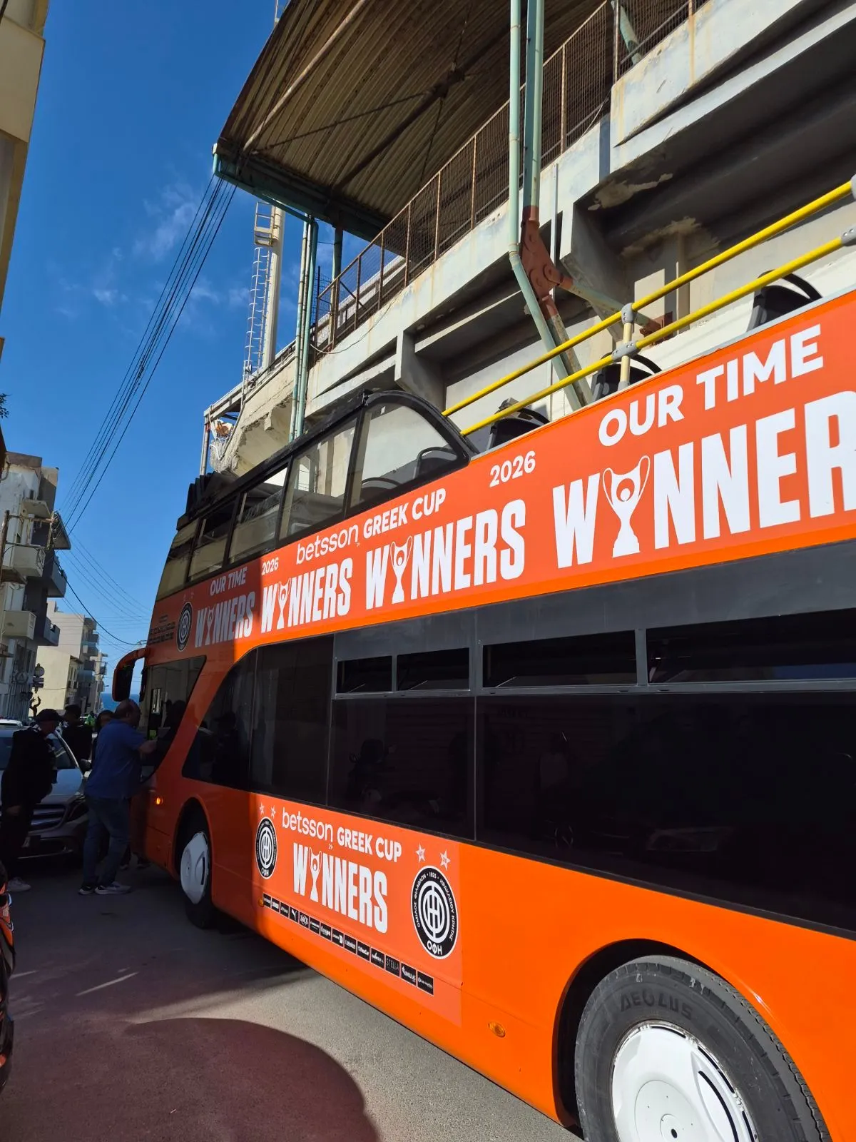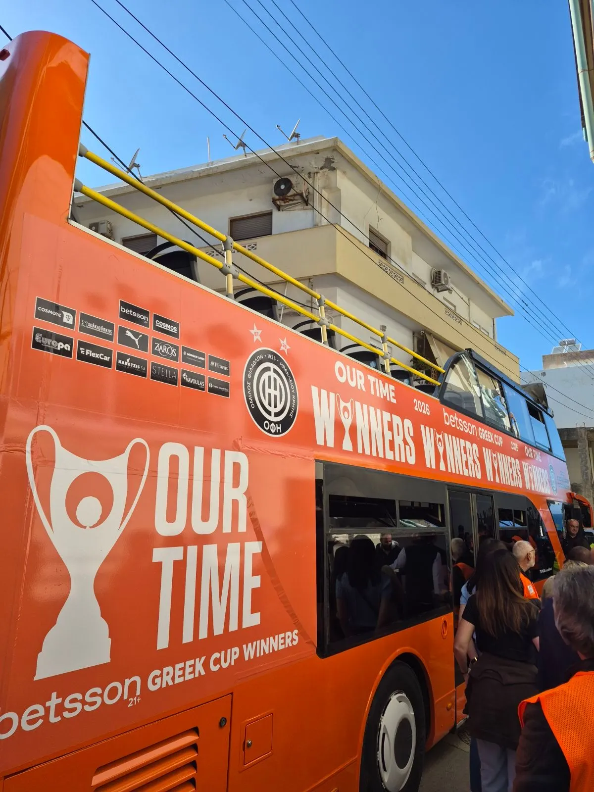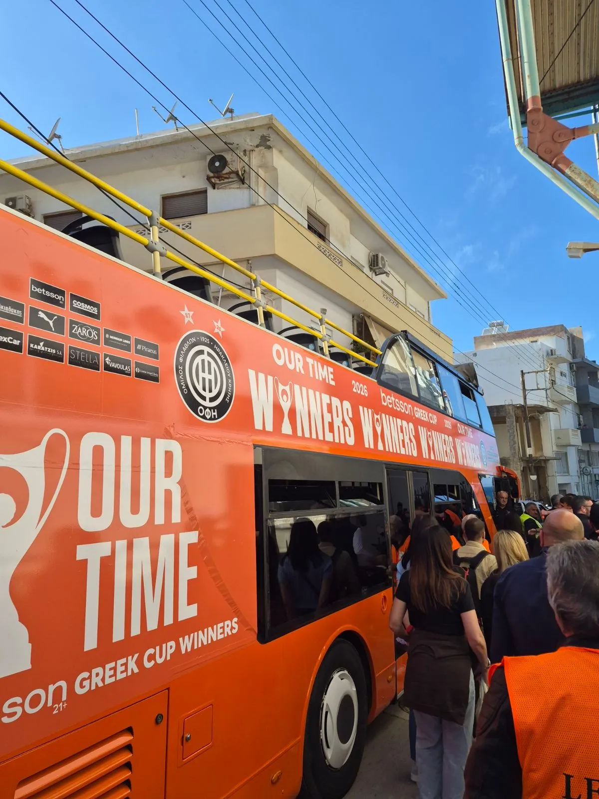 Δείτε το λεωφορείο με το οποίο θα παρελάσουν στο Ηράκλειο οι θριαμβευτές του ΟΦΗ έπειτα από την κατάκτηση του Κυπέλλου Ελλάδας Betsson.