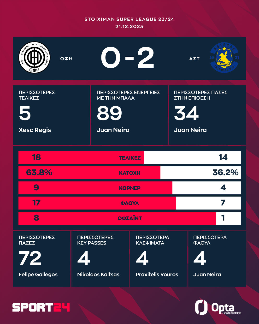 Τα στατιστικά και οι κορυφαίες επιδόσεις στο ΟΦΗ - Αστέρας