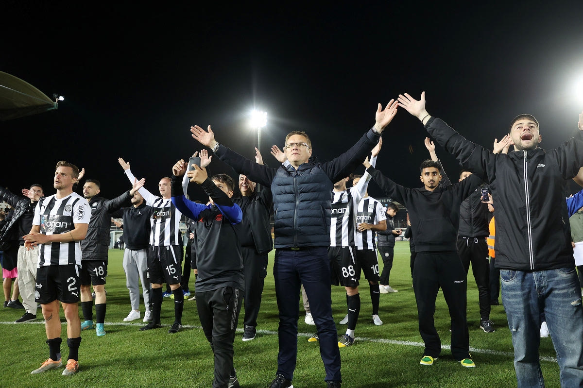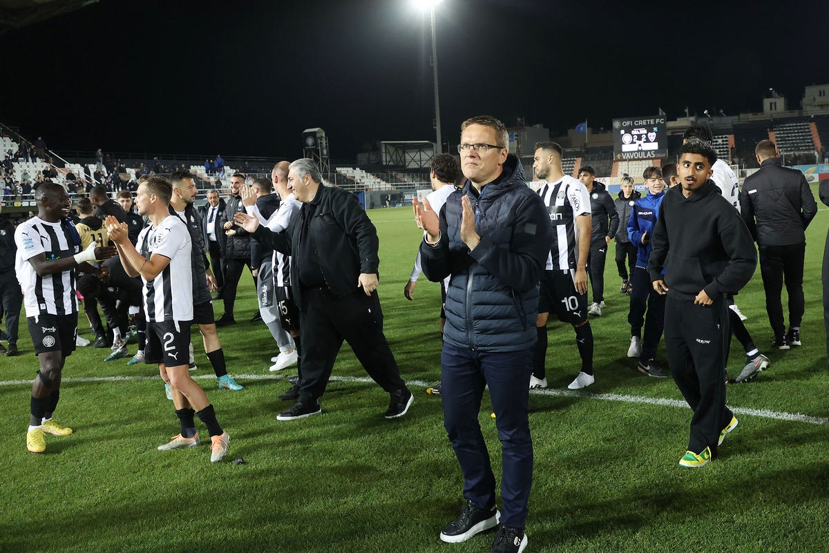 Μετά το τέλος της αναμέτρησης του ΟΦΗ με τον Ιωνικό, ο Βάλντας Νταμπράουσκας, ο Μιχάλης Μπούσης και οι παίκτες γιόρτασαν μαζί με τον κόσμο, στο τελευταίο εντός έδρας ματς.