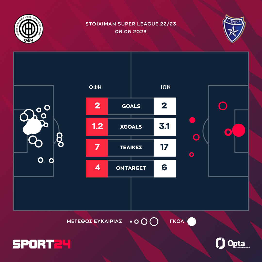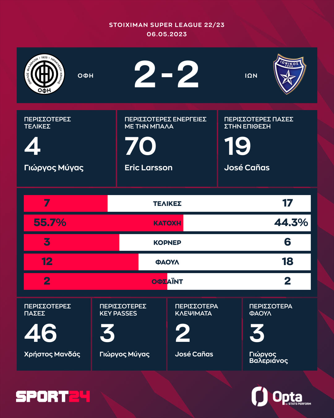 ΟΦΗ – Ιωνικός 2-2: Παραμένουν αήττητοι οι Κρητικοί, πάνε για τελικό σωτηρίας οι Νικαιώτες