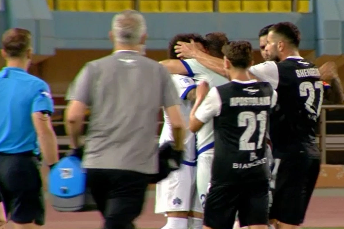 Ο Σωτήρης Κυργιάκος πήρε τον ρόλο του “πυροσβέστη”, μπήκε στη μέση και πρόλαβε τα χειρότερα για την ομάδα του τουλάχιστον, αφού ο διεθνής Γεωργιανός εξτρέμ του ΟΦΗ αντίκρισε την κόκκινη κάρτα μετά από υπόδειξη του VAR.