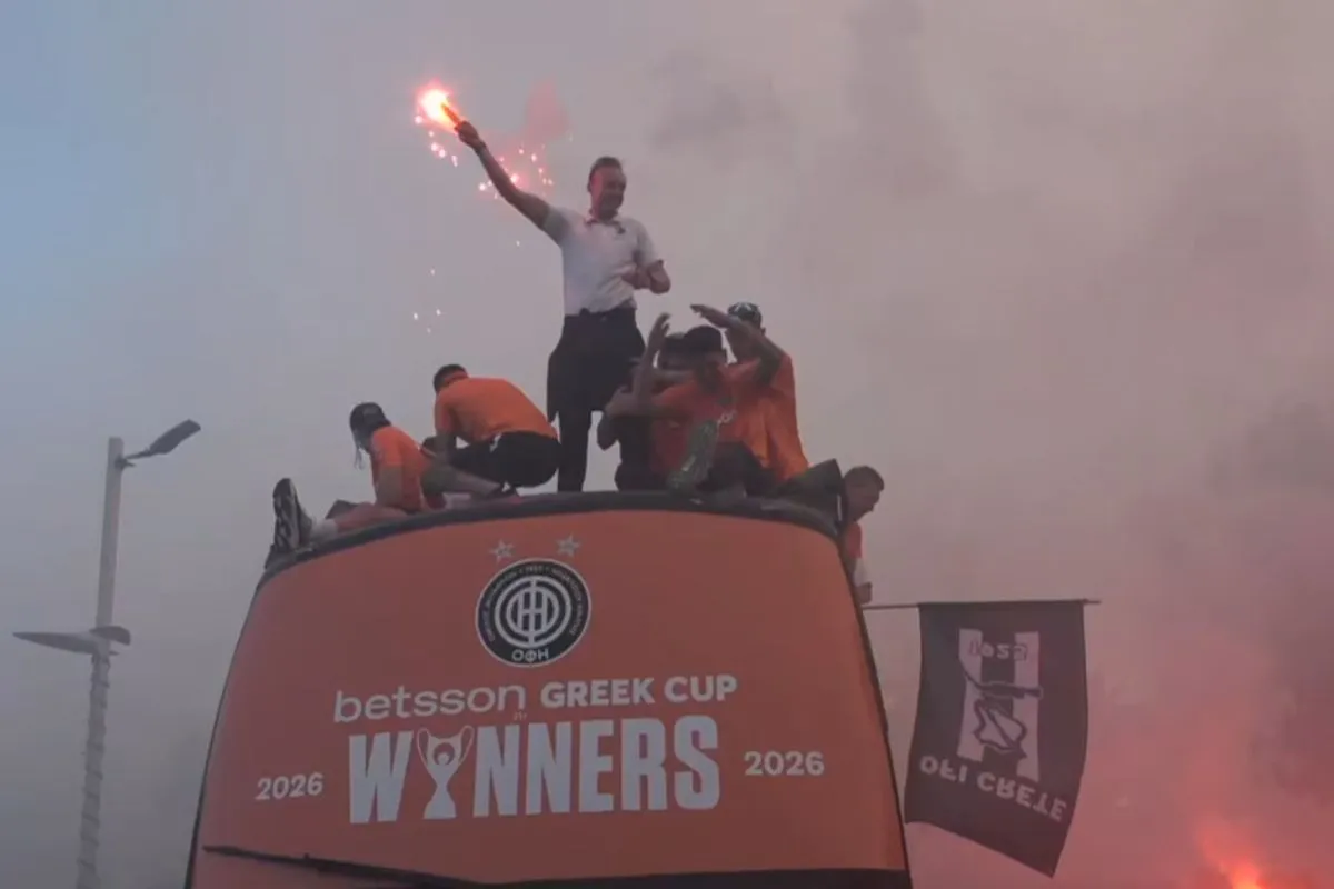 ΟΦΗ, Κύπελλο Ελλάδας: Απίθανος Κόντης, ανέβηκε στην κορυφή του πούλμαν με πυρσό στο χέρι