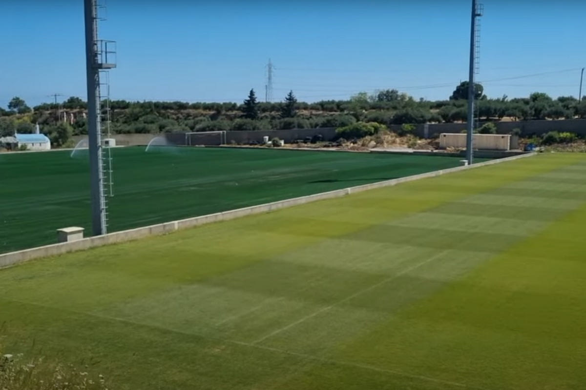 Οι Κρητικοί δημοσίευσαν video από την πορεία των έργων. Γίνεται εμφανές πως στο δεύτερο, υβριδικό γήπεδο έχει αρχίσει να βγαίνει ο φυσικός χλοοτάπητας, ο οποίος μαζί με τον συνθετικό δίνει διαφορετικό χρώμα.