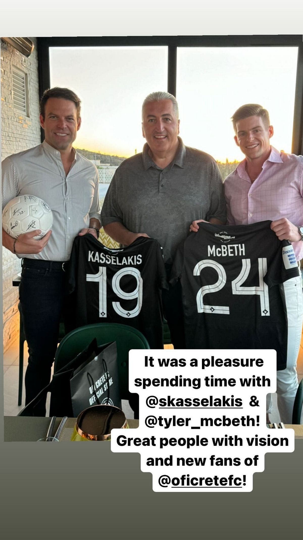 “Τιμή μου που πέρασα χρόνο με τον Στέφανο Κασσελάκη και τον Τάιλερ Μπακμπέθ. Εξαιρετικοί άνθρωποι με όραμα και πλέον είναι και φίλαθλοι του ΟΦΗ”, έγραψε ο επιχειρηματίας στο Instagtam story που ανέβασε.