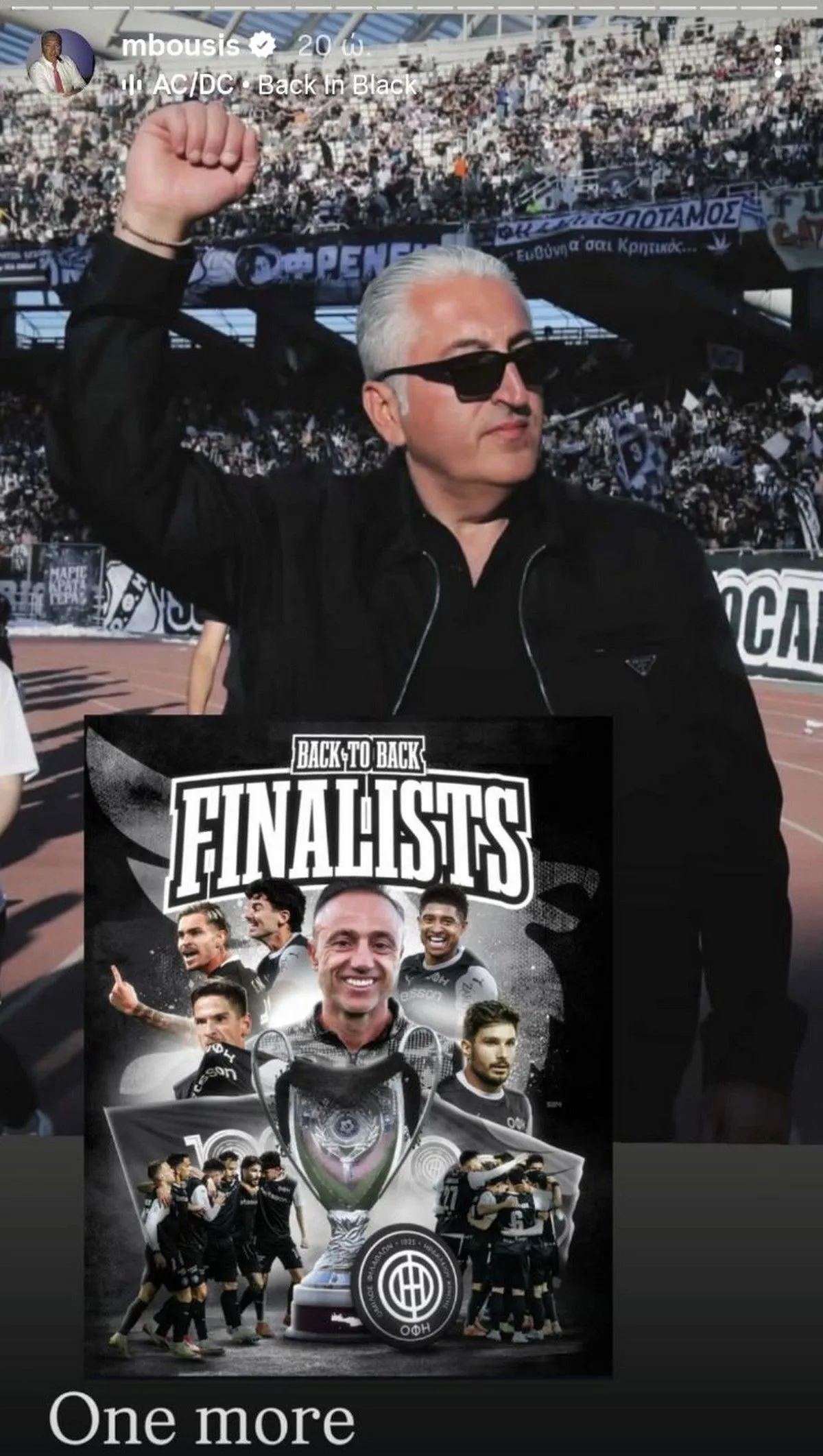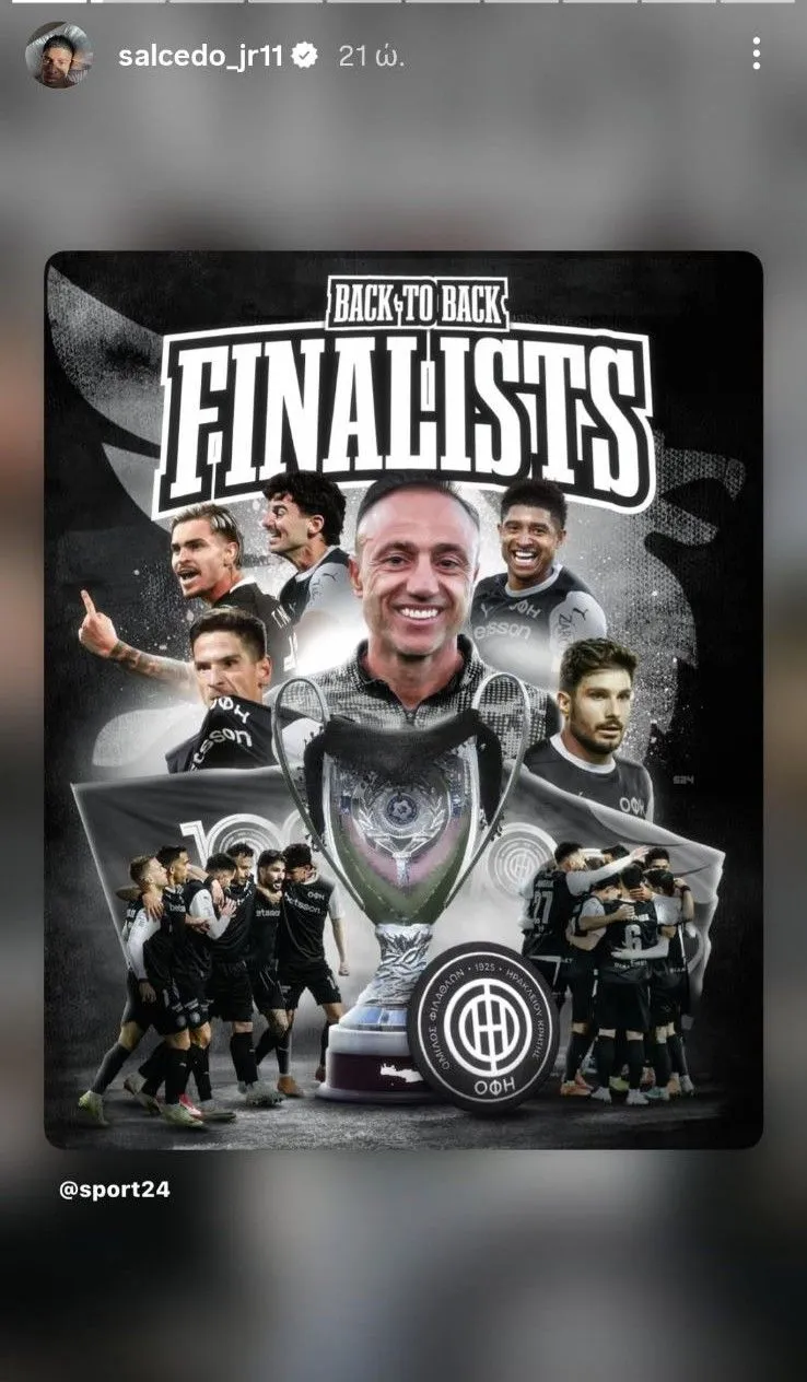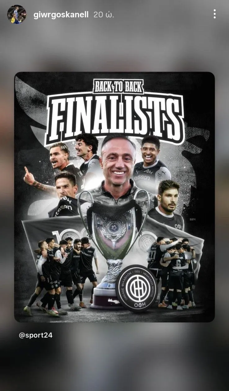 Ο Μιχάλης Μπούσης και ποδοσφαιριστές του ΟΦΗ αναδημοσίευσαν το εικαστικό του SPORT24 και του Κωνσταντίνου Μπαντούνα για την πρόκριση στον τελικό του Κυπέλλου Ελλάδας Betsson για δεύτερη σερί χρονιά.