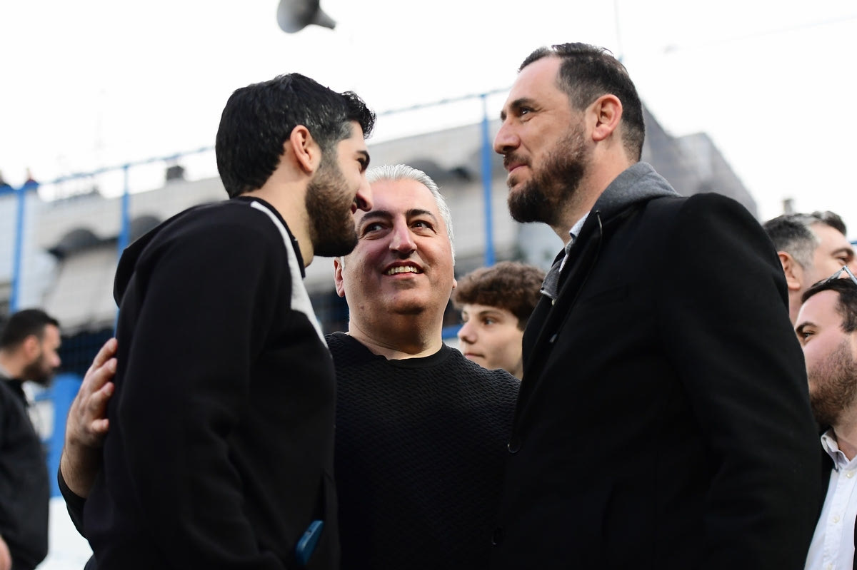 Ο ιδιοκτήτης του ΟΦΗ, Μιχάλης Μπούσης, πανηγύρισε μαζί με τον γιο του Δημήτρη και τον CEO των Κρητικών, Μηνά Λυσάνδρου, το διπλό στη Νίκαια επί του Ιωνικού.