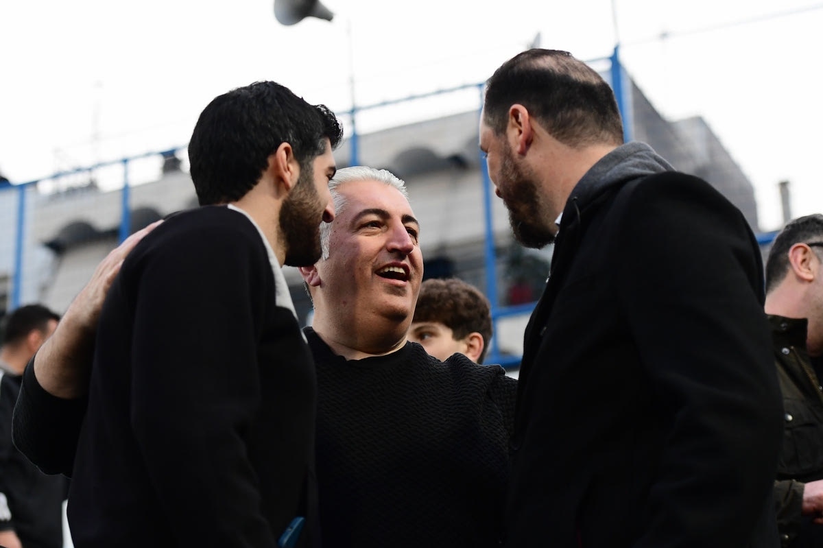 Ο Μιχάλης Μπούσης παρακολούθησε από κοντά το παιχνίδι και ο φωτογραφικός φακός τον συνέλαβε να πανηγυρίζει μαζί με τον γιο του Δημήτρη και τον CEO, Μηνά Λυσάνδρου.