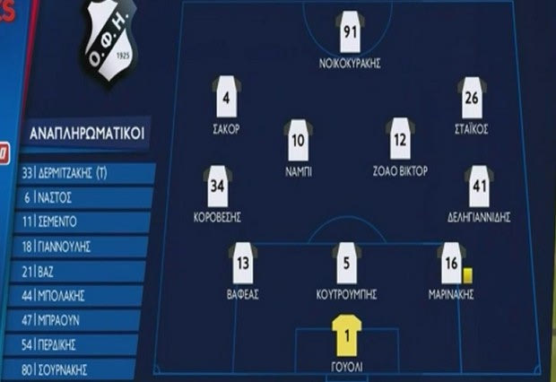Στο 94′ ο ΟΦΗ κέρδισε φάουλ στο ημικύκλιο της μεγάλης περιοχής των “ερυθρόλευκων” και ο Δεληγιαννίδης με πολύ έξυπνη συρτή εκτέλεση μείωσε σε 1-3 στο 95′. Αυτή ήταν και η τελευταία φάση του αγώνα.