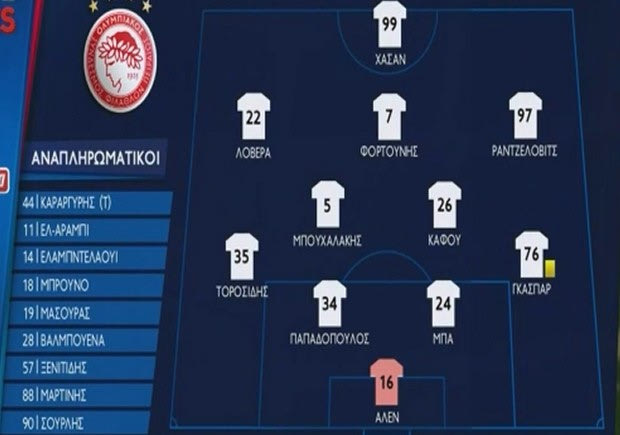 Χωρίς Σα, Σεμέδο, Σισέ, Τσιμίκας, Γκιγιέρμε και Καμαρά ο Ολυμπιακός ήταν αναμενόμενο πως θα έχει αλλαγές η ενδεκάδα του. Ο Μαρτίνς άλλαξε και διάταξη. Επανέφερε το 4-2-3-1 με το οποίο ξεκίνησε τη σεζόν. Ο Σίμος από την πλευρά του έδωσε φανέλα βασικού για πρώτη φορά φέτος στον 19χρονο Βαγγέλη Νοικοκυράκη, που ήταν η αιχμή του δόρατος στο 5-4-1.
