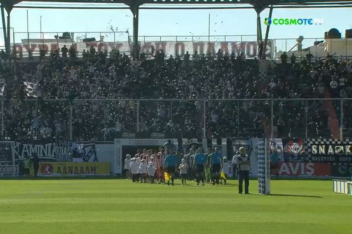 Ο Ολυμπιακός φιλοξενήθηκε στο Ηράκλειο από τον ΟΦΗ για την 7η αγωνιστική της Super League. Οι φίλαθλοι των δύο ομάδων που βρέθηκαν στο Γεντί Κουλέ δημιούργησαν μία εντυπωσιακή ατμόσφαιρα κατά την είσοδο των παικτών στον αγωνιστικό χώρο.