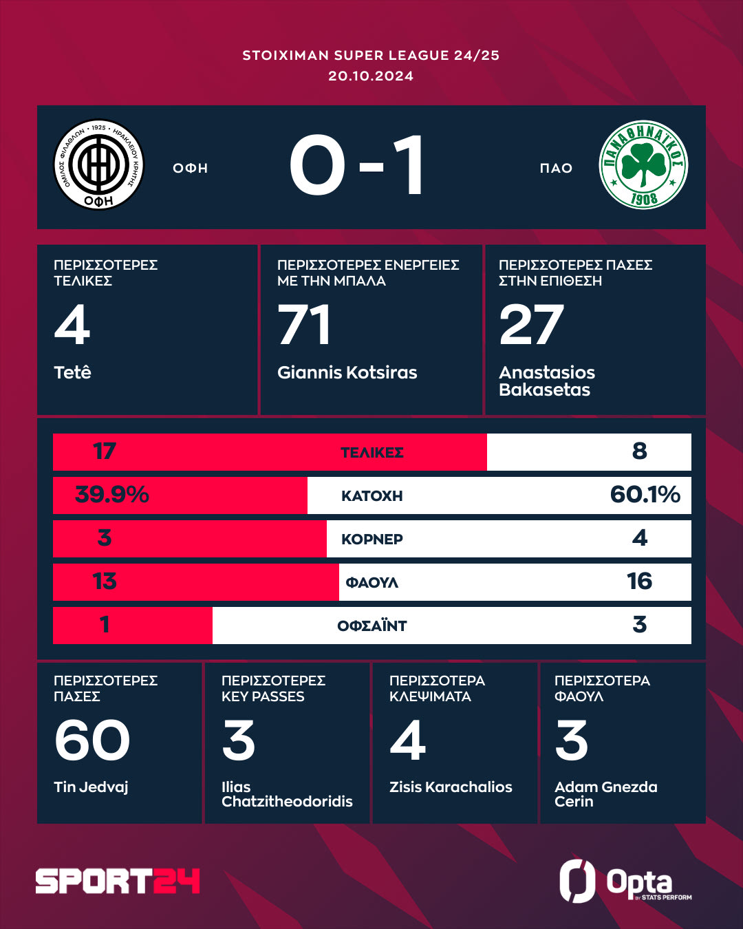 Τα στατιστικά και οι κορυφαίες επιδόσεις στο ΟΦΗ - Παναθηναϊκός