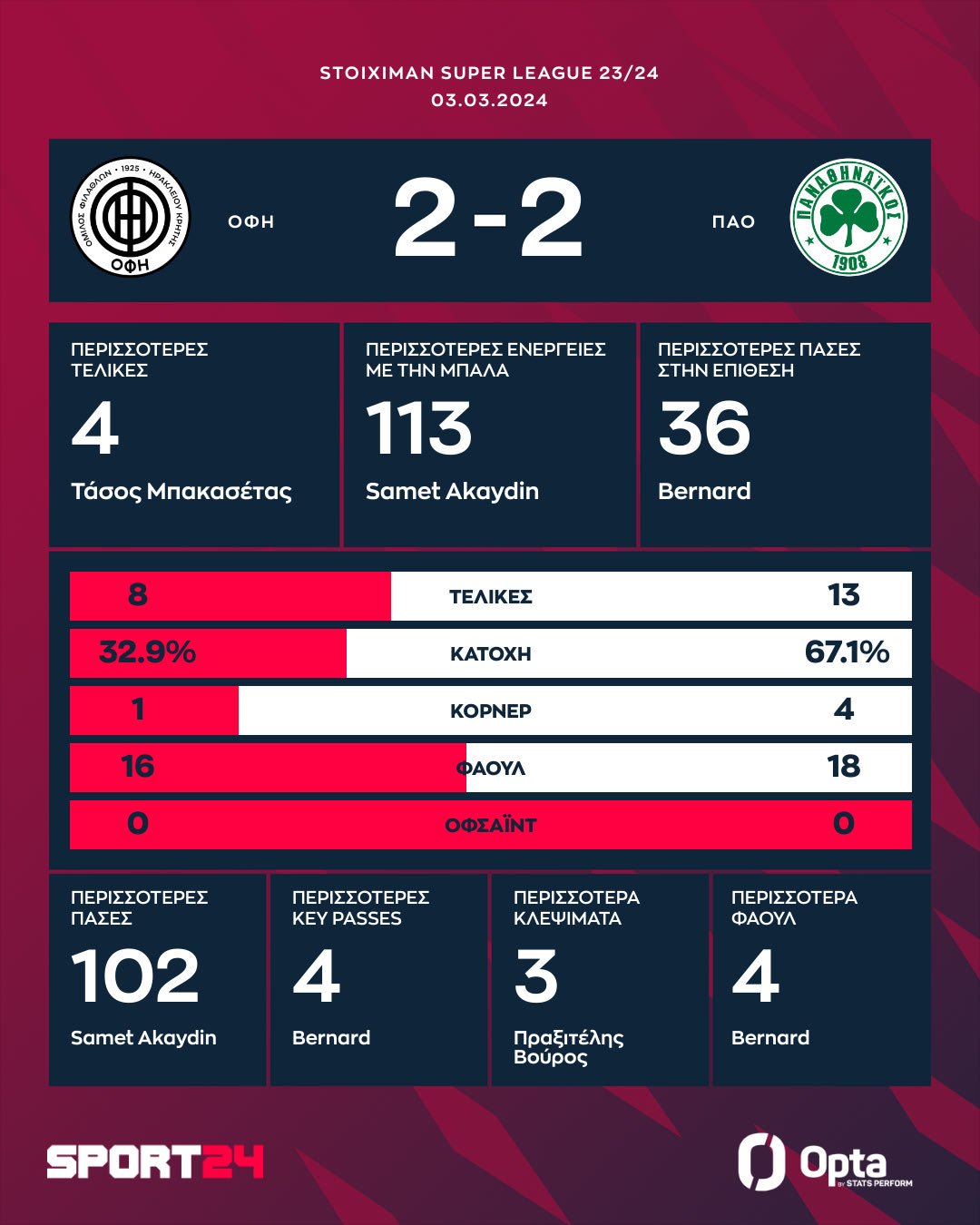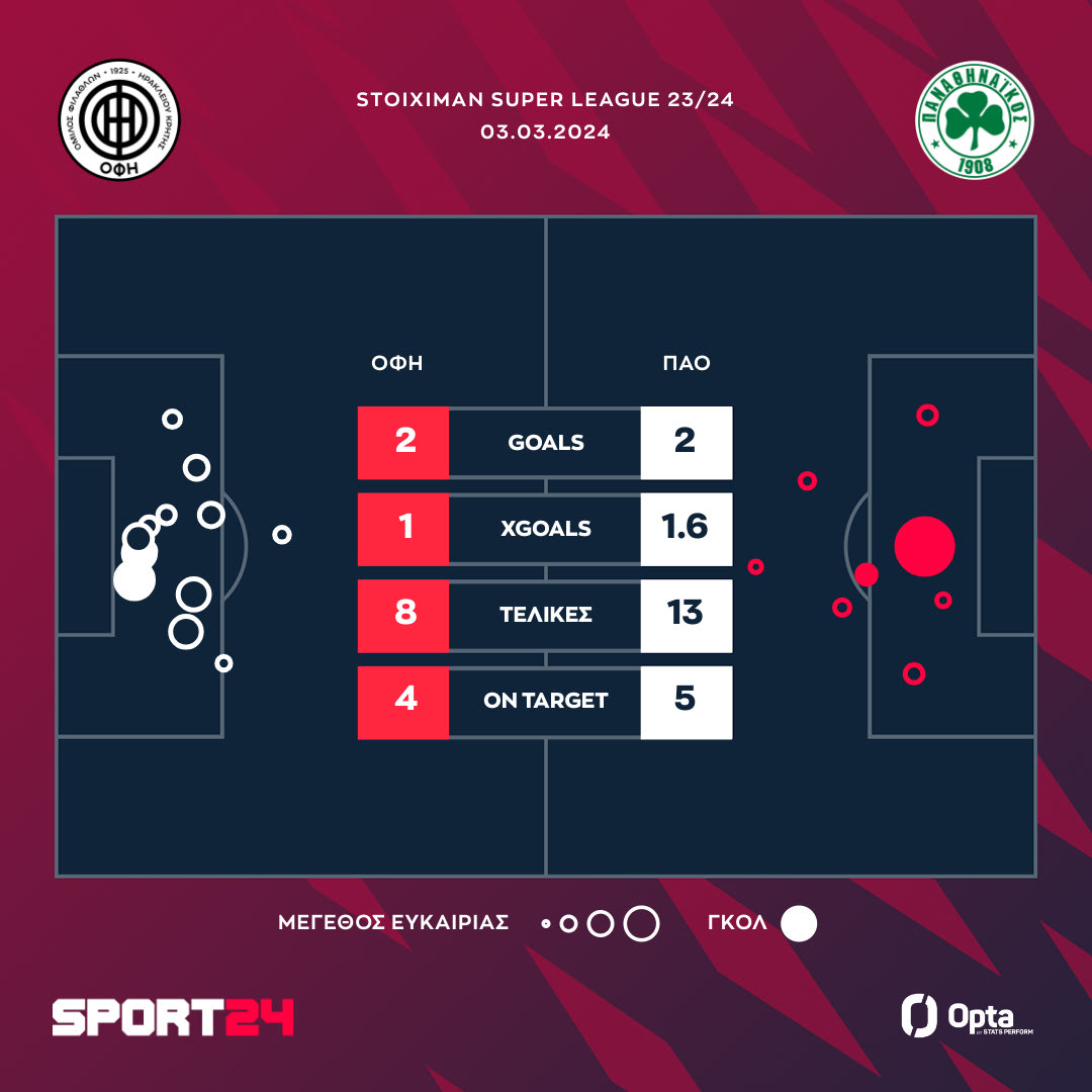 Ο ΟΦΗ πήρε την ισοπαλία από τον Παναθηναϊκό στο Ηράκλειο με 2-2 και μετά την ολοκλήρωση της 26ης αγωνιστικής το τριφύλλι θα μπει ως τέταρτο στα playoffs και στο -4 από την κορυφή.