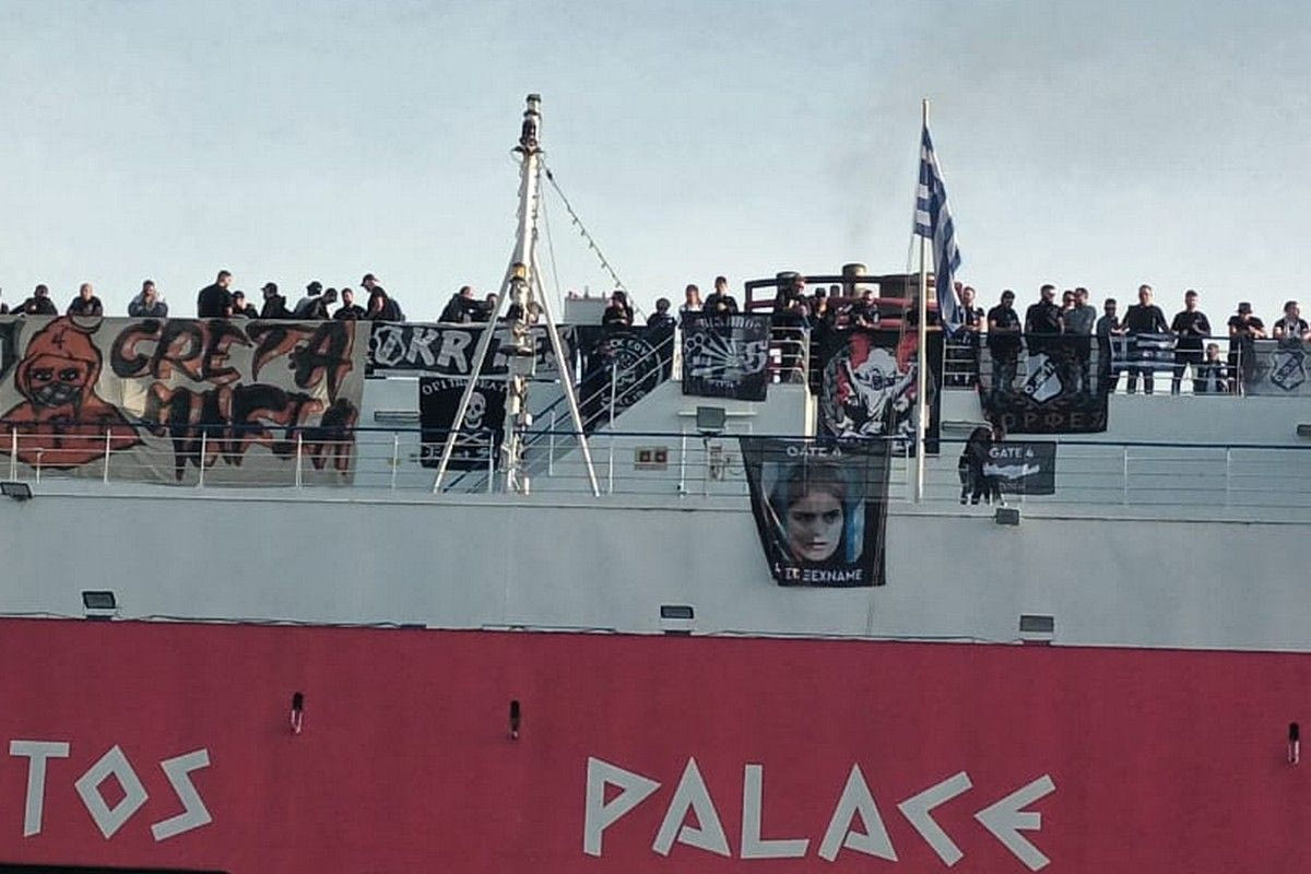 ΟΦΗ: Πανό για τη Ρενάτα από τους φίλους των Κρητικών στην αναχώρησή τους για Αθήνα