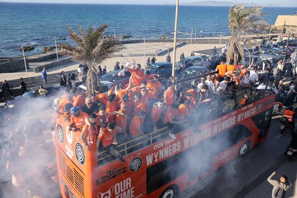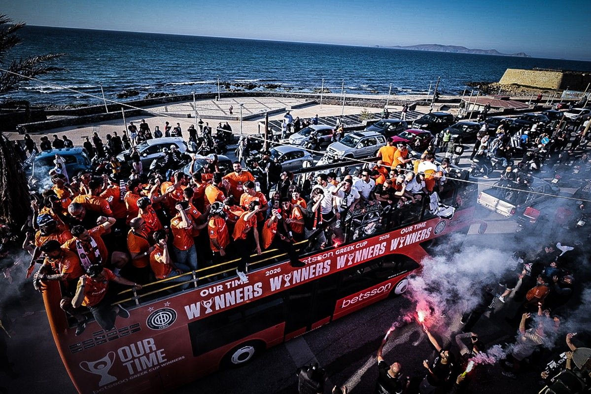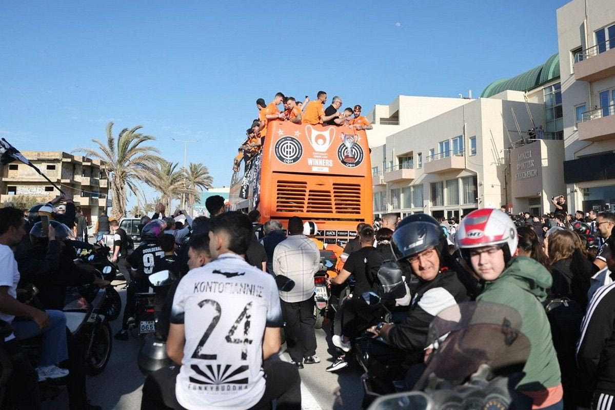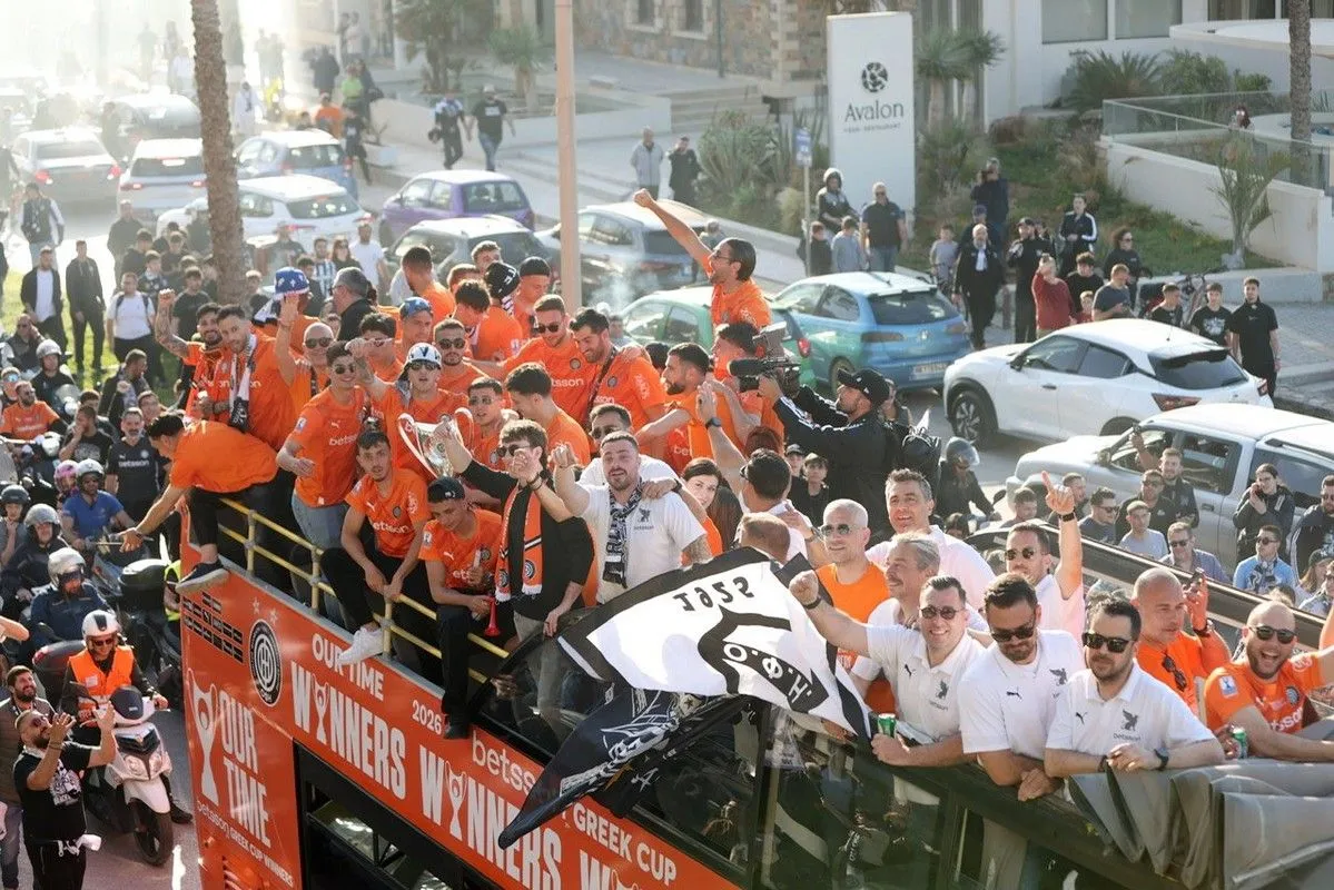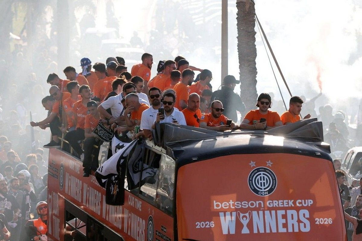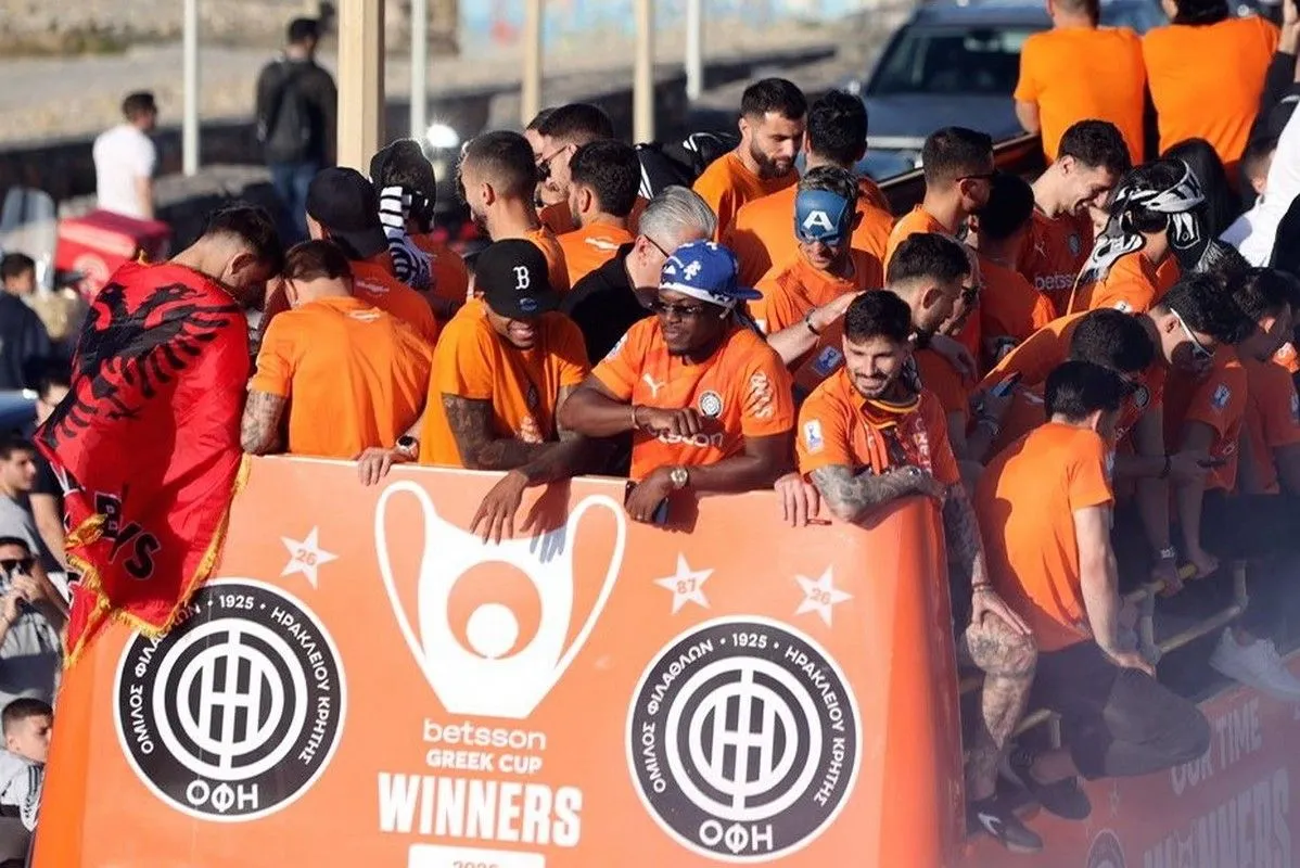 Το Ηράκλειο κάηκε για το καμάρι του, τον κυπελλούχο ΟΦΗ! Οι θριαμβευτές του Πανθεσσαλικού επέστρεψαν στην Κρήτη και χιλιάδες φίλαθλοι βγήκαν στους δρόμους για να αποθεώσουν τους νικητές του Κυπέλλου Ελλάδας Betsson 2026.