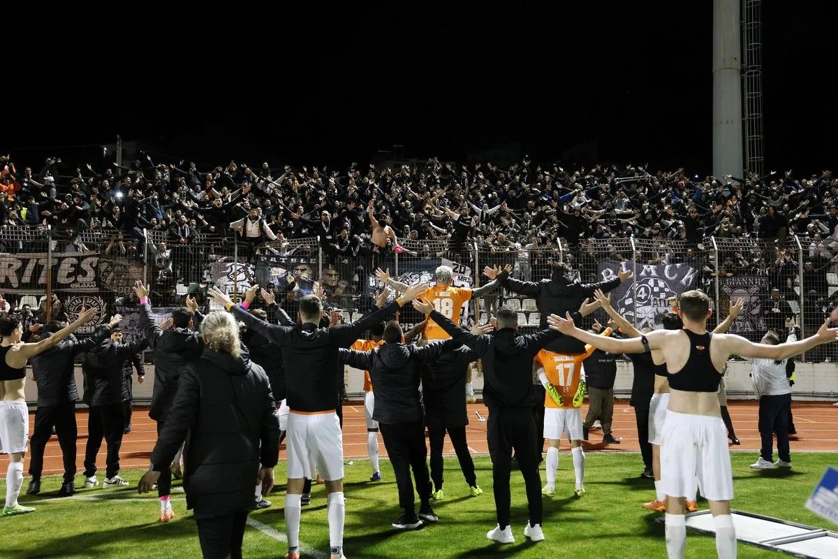 Παίκτες και οπαδοί έγιναν ένα, με αγκαλιές, συνθήματα και έντονη συγκίνηση, σε μια στιγμή που αποτυπώνει τη σημασία της επιτυχίας για την κρητική ομάδα, η οποία θα διεκδικήσει για δεύτερη διαδοχική χρονιά το τρόπαιο.