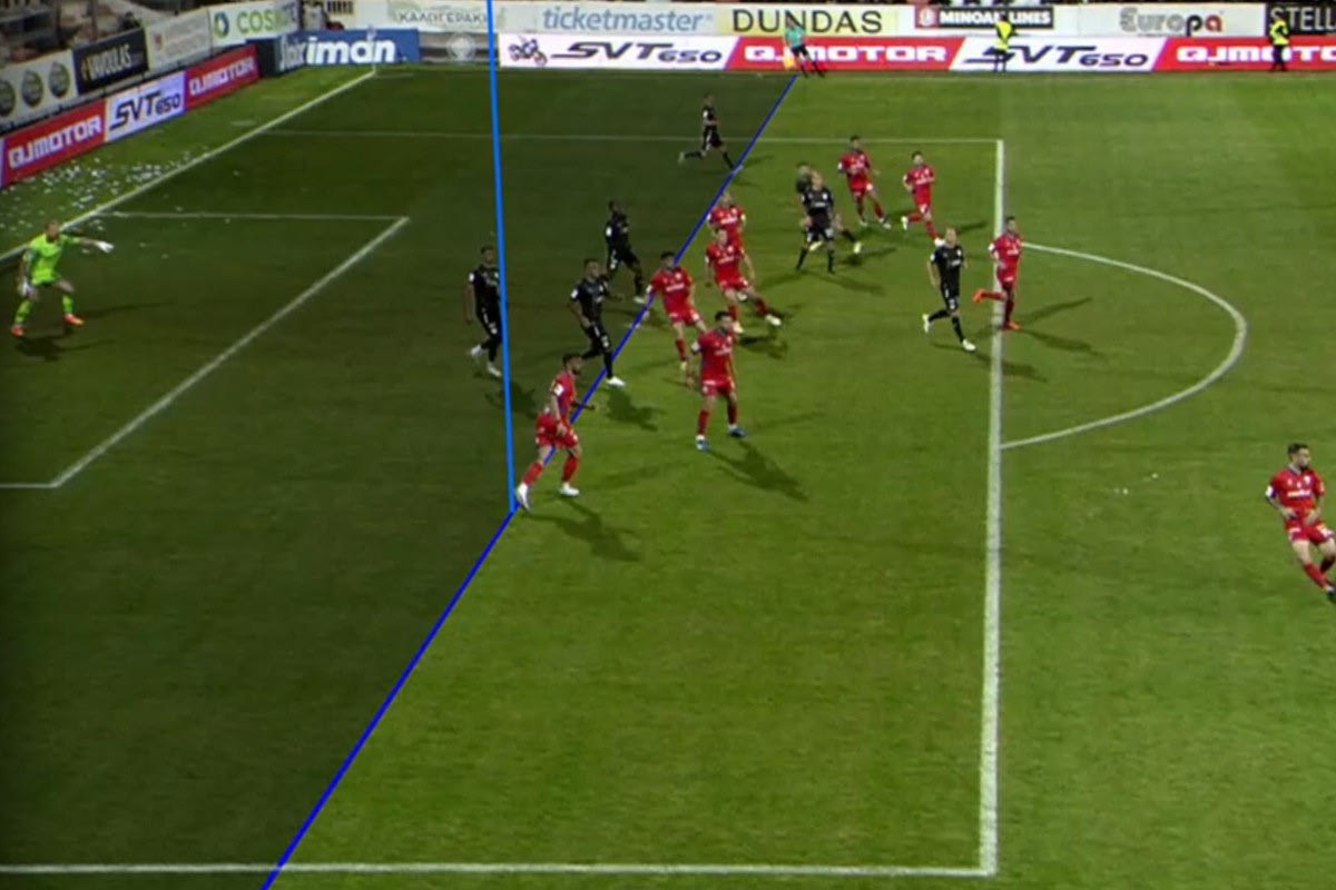 Ο διαιτητής έκρινε ότι ο επιθετικός του ΟΦΗ είχε συμμετοχή στη φάση, την επηρεάζει και έτσι αποφάσισε να ακυρώσει το τέρμα.