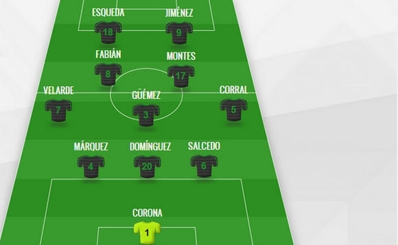 ΜΕΞΙΚΟΤερματοφύλακες 1. Χοσέ Κορόνα (34) Κρους Ασούλ 12. Αλφρέδο Ταλαβέρα (32) Τολούκα 23. Μελιτόν Ερνάντες (32) Βερακρούς Αμυντικοί 2. Χούλιο Ντομίνγκες (27) Κρους Ασούλ 3. Ούγκο Αγιάλα (28) Τίγκρες 4. Ράφα Μάρκες (36) Βερόνα 13. Κάρλος Σαλσέδο (21) Γκουανταλαχάρα 14. Χουάν Κάρλος Βαλενσουέλα (31) Άτλας 15. Χεράρδο Φλόρες (29) Κρους Ασούλ 16. Αντριάν Αλδρέτε (26) Σάντος Λαγκούνα 21. Τζορτζ Κοράλ (24) Κερέταρο 22. Εφραΐν Βελάρδε (22) Μοντερέι Μέσοι 5. Χουάν Κάρλος Μεδίνα (31) Άτλας 6. Χαβιέρ Γκουέμες (23) Τιχουάνα 8. Μάρκο Φαμπιάν (25) Γκουανταλαχάρα 10. Λουίς Μόντες (29) Λεόν 11. Χαβιέρ Ακίνο (25) Ράγιο Βαγιεκάνο 17. Μάριο Οσούνα (26) Κερέταρο Επιθετικοί 7. Χοσέ Μανουέλ Κορόνα (22) Τβέντε 9. Ραούλ Χιμένες (24) Ατλέτικο Μαδρίτης 18. Ενρίκε Εσκουέδα (27) Τίγκρες 19. Βισέντε Ματίας Βουόσο (33) Τσιάπας 20. Εντουάρντο Ερέρα (26) Τίγκρες ΠΡΟΠΟΝΗΤΗΣ: Μιγκέλ Ερέρα (Μεξικό) |