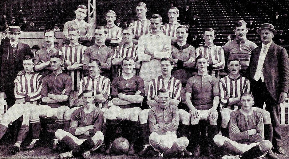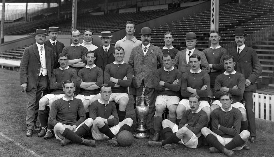 1907-08: Η φωτογραφία από την πρώτη ομάδα της Μάντσεστερ Γιουνάιτεντ που στέφθηκε πρωταθλήτρια το 1908. Καθοδηγητής της ομάδας ο Έρνεστ Μάγκναλ (τέρμα αριστερά) ο οποίος είναι μόλις ο ένας από τους τρεις συνολικά προπονητές (οι άλλοι δύο είναι ο Σερ Ματ Μπάσμπι και ο Σερ Άλεξ Φέργιουσον) που έχουν οδηγήσει τους “διαβόλους” στον τίτλο. Εκείνη τη σεζόν η Γιουνάιτεντ έκανε 13 νίκες στα πρώτα 14 ματς πρωταθλήματος και τερμάτισε τον μαραθώνιο με 9 πόντους διαφορά από τη 2η Άστον Βίλα.