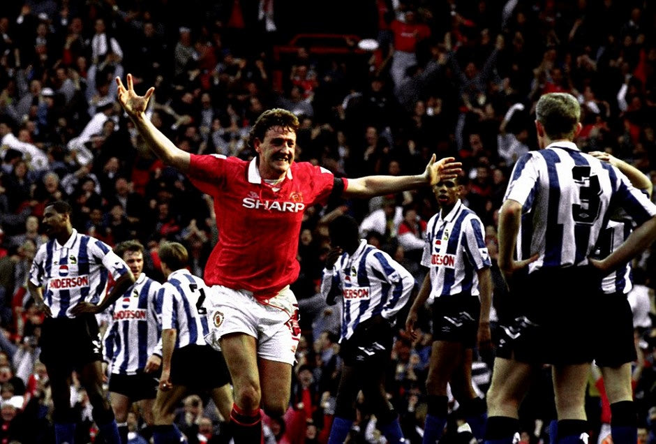 1992-93: Μετά από 26 χρόνια ξηρασίας η Γιουνάιτεντ επέστρεψε στους τίτλους, παίρνοντας το πρώτο πρωταθλημα επί παντοκρατορίας Σερ Άλεξ Φέργκιουσον.Η μεταγραφή του Ερίκ Καντονά από τη Λιντς είχε αποτελέσει μία από τις εξυπνότερες και πιο επιτυχημένες κινήσεις στην ιστορία του αγγλικού ποδοσφαίρου ενώ ο αγώνας που χάρισε ουσιαστικά τον τίτλο στους “διαβόλους” ήταν αυτός κόντρα στη Σέφιλντ Γουένσντεϊ. Οι φιλοξενούμενοι είχαν προηγηθεί 1-0 αλλά η ανατροπή ήρθε με δύο γκολ του κεντρικού αμυντικού Στιβ Μπρους! Το νικητήριο γκολ σημειώθηκε στο 97′ και υποχρέωσε τον Φέργκιουσον να συμμετέχει σε έναν από τους πιο συλλεκτικούς πανηγυρισμούς προπονητή στην εποχή της Premier League