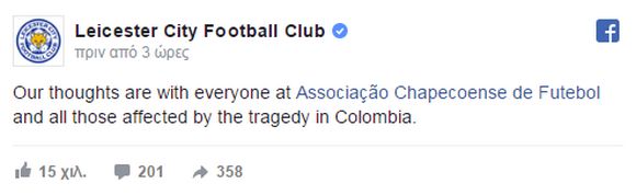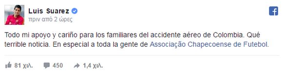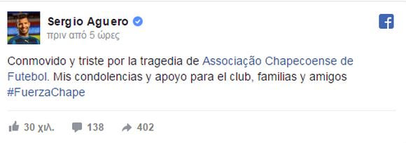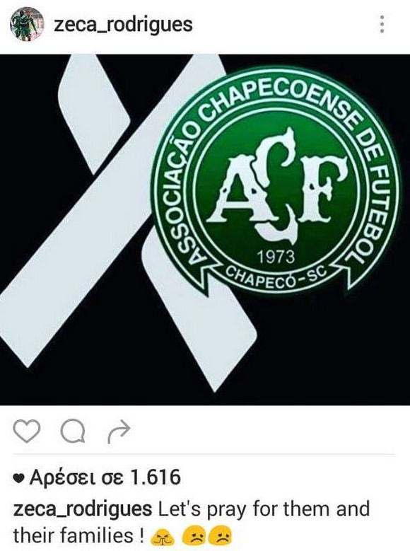 Προπονητές, παίκτες και ομάδες έστειλαν μέσω των social media μηνύματα στήριξης στις οικογένειες των θυμάτων της αεροπορικής τραγωδίας της Σαπεκοένσε.