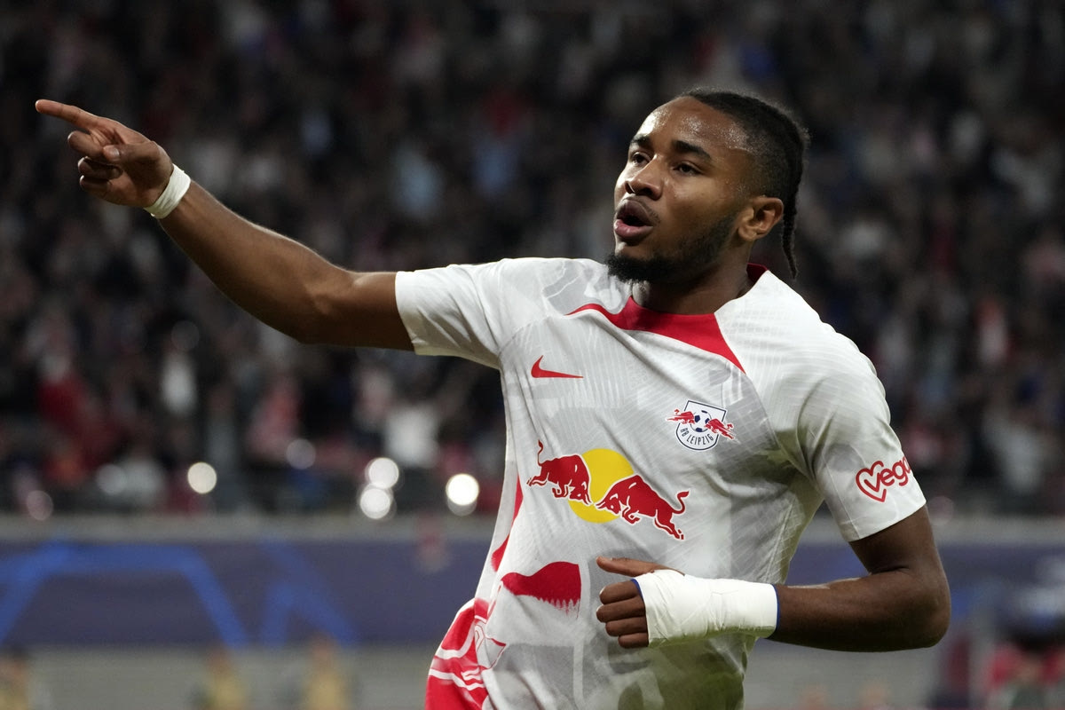 Ο Κρίστοφερ Ενκουνκού πανηγυρίζει γκολ του με την Λειψία κόντρα στην Σέλτικ | 5 Οκτωβρίου 2022 © 2022 Michael Sohn/AP IMAGES