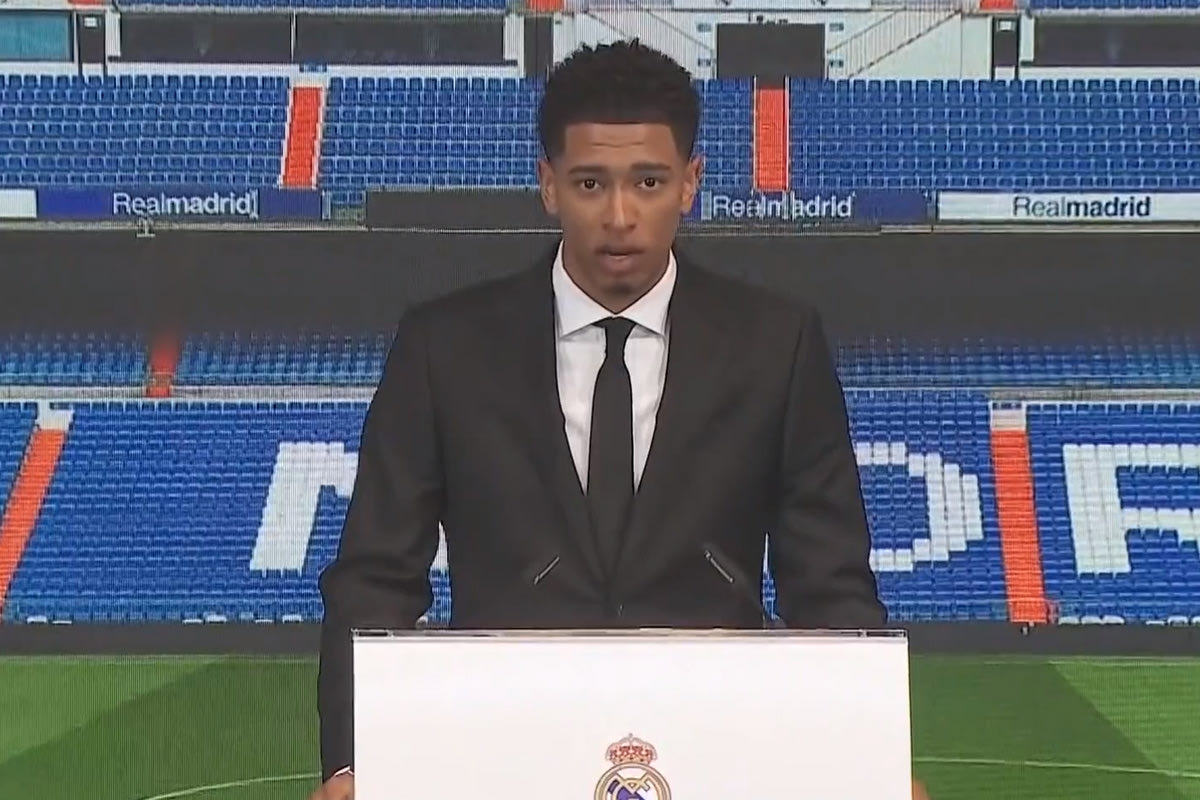 Ο Τζουντ Μπέλιγχαμ κατά την παρουσίασή του από τη Ρεάλ Print Screen