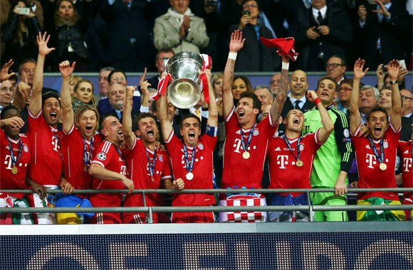 Στον τέταρτο εθνικό τελικό αντιμέτωπες τέθηκαν δυο γερμανικές ομάδες, η Μπάγερν και η Ντόρτμουντ. Οι Βαυαροί τερμάτισαν πρώτοι στον όμιλό τους, πάνω από τις Βαλένθια, Μπάτε Μπορίσοφ και Λιλ. Στη φάση των “16” κέρδισαν 1-3 την Άρσεναλ στο Λονδίνο, αλλά είδαν τον χάρο με τα μάτια τους στο Μόναχο, όπου ηττήθηκαν 0-2. Στον προημιτελικό απέκλεισαν εύκολα την Γιουβέντους με νίκες εντός (2-0) και εκτός (0-2), ενώ στον ημιτελικό διέσυραν κυριολεκτικά την Μπαρτσελόνα με συνολικό σκορ 7-0! Από τη μεριά της, η Ντόρτμουντ τερμάτισε πρώτη και αήττητη στον όμιλο (4 νίκες & 2 ισοπαλίες), πάνω από τη Ρεάλ, τον Άγιαξ και την Μάντσεστερ Σίτι. Στους “16” ξεπέρασε εύκολα το εμπόδιο της Σαχτάρ (συνολικό σκορ 5-2), στα προημιτελικά έφτιαξε ένα μικρό έπος, αφού στις καθυστερήσεις της ρεβάνς έχανε 1-2 από τη Μάλαγα, αλλά με δυο γκολ στο 91′ και το 93′ πέτυχε την απόλυτη ανατροπή και στον ημιτελικό διέλυσε 4-1 τη Ρεάλ στη Γερμανία και χάνοντας 2-0 στο “Μπερναμπέου”, πήρε αυτή το πολύτιμο εισιτήριο. Ο τελικός διεξήχθη στις 25 Μαΐου στο Λονδίνο και οι δυο τεχνικοί, Χάινκες και Κλοπ, κατέβασαν τις ακόλουθες ενδεκάδες: