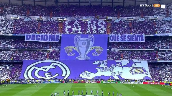 Οι φίλαθλοι της Ρεάλ Μαδρίτης ετοίμασαν για ακόμα ένα μεγάλο παιχνίδι της ομάδας ένα εντυπωσιακό πανό. Αυτήν τη φορά, το πανό δεν αφορούσε μόνο την ομάδα τους, αλλά και τον αντίπαλο, τον οποίο είχαν νικήσει ήδη δύο φορές σε τελικό Champions League, στη Λισαβόνα το 2014 και στο Μιλάνο το 2016.