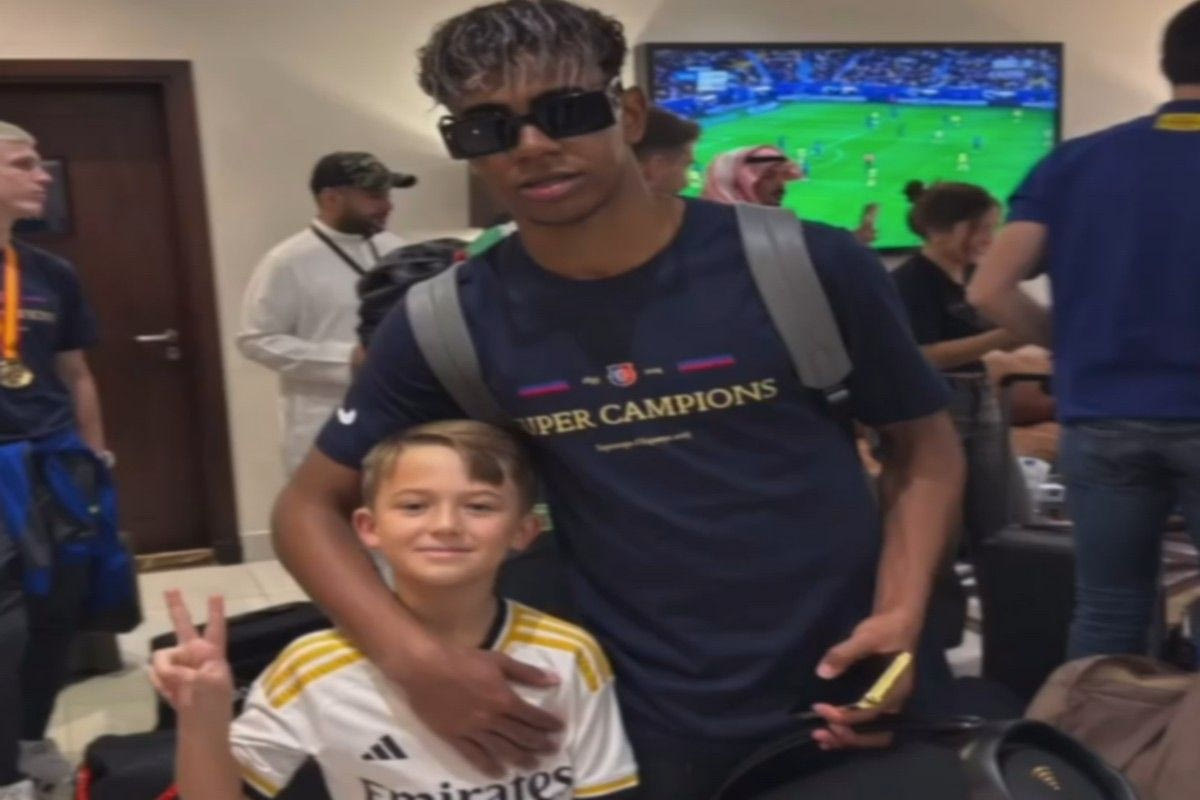 Οι Λαμίν Γιαμάλ και Ρόμπερτ Λεβαντόβσκι έκαναν το χατήρι ενός μικρού φαν της Ρεάλ που θέλησε να φωτογραφηθεί μαζί τους αλλά την ίδια φρόντισαν να στείλουν μήνυμα με ιδιαίτερο τρόπο πως η κόντρα της "Μπάρτσα" με τους μερένγκες είναι μεγάλη.