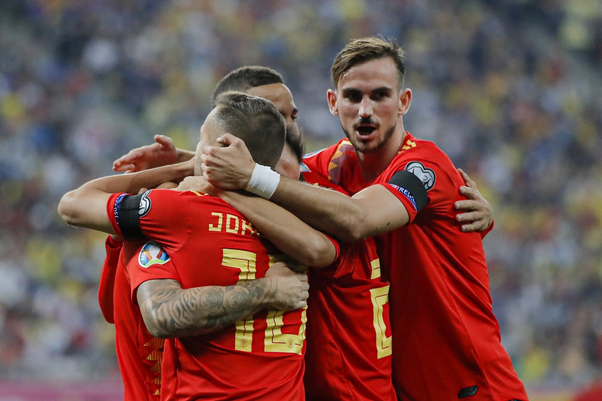 Οι παίκτες της Ισπανίας πανηγυρίζουν γκολ που σημείωσαν στο Euro 2020 © 2019 Vadim Ghirda / AP Images