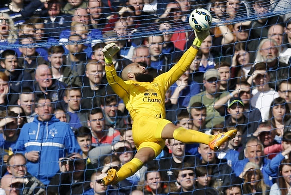 Football - Everton v Southampton - Barclays Premier League - Goodison Park - 4/4/15 Everton's Tim Howard in action Reuters / Andrew Yates Livepic EDITORIAL USE ONLY. No use with unauthorized audio, video, data, fixture lists, club/league logos or "live" services. Online in-match use limited to 45 images, no video emulation. No use in betting, games or single club/league/player publications. Please contact your account representative for further details. ORG XMIT: UKV994