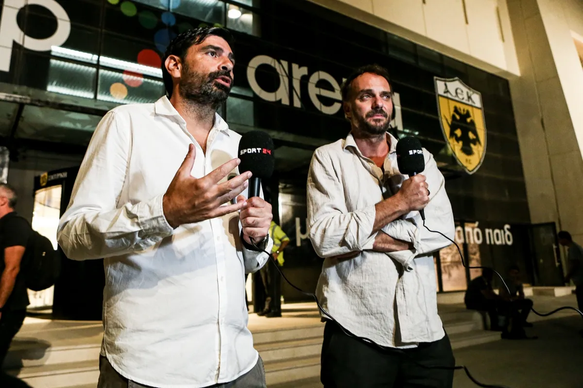 Ο Παντελής Βλαχόπουλος μαζί με τον Θέμη Καίσαρη έξω από την OPAP Arena