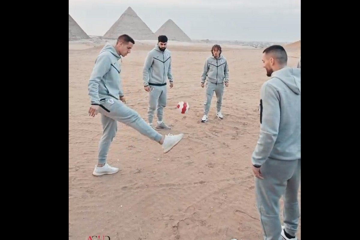 Οι παίκτες της εθνικής Κροατίας βρίσκονται στην Αίγυπτο για το διεθνές φιλικό απέναντι στην ομώνυμη ομάδα και δεν έχασαν την ευκαιρία να συνδυάσουν την επίσκεψή τους στις πυραμίδες της Γκίζας με -τι άλλο;- ποδόσφαιρο.