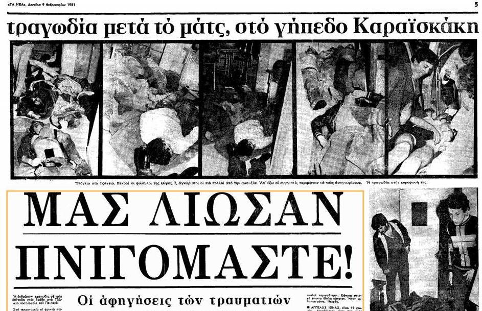 Με αφορμή λοιπόν το μακελειό στην Αίγυπτο , το Sport24.gr κάνει αναδρομή στις χειρότερες τραγωδίες που συγκλόνισαν το ποδόσφαιρο παγκοσμίως. Ανάμεσά τους και η πιο μαύρη στιγμή του αθλήματος στη χώρα μας η οποία συνέβη πριν 31 χρόνια στο Στάδιο Καραϊσκάκης…