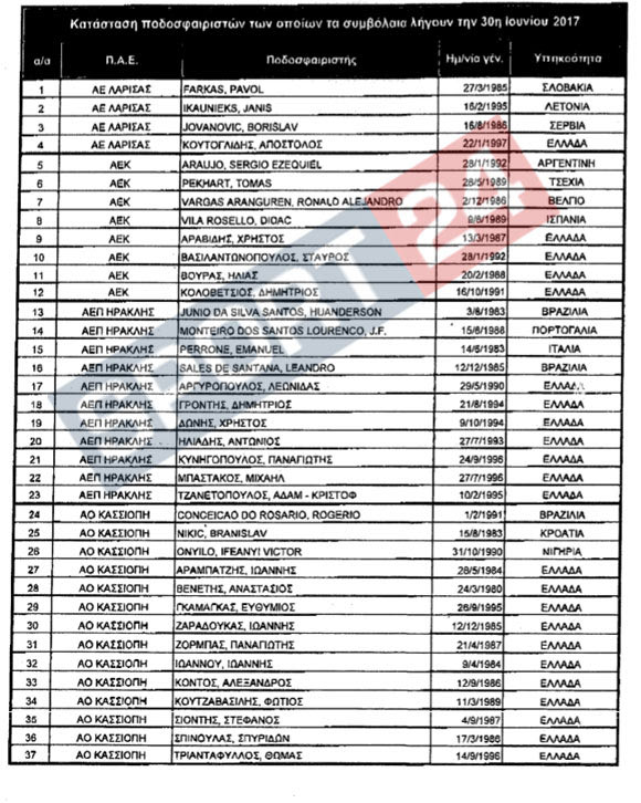 Προ ημερών είχατε διαβάσει στο ρεπορτάζ του Sport24.gr ποιοι παίκτες μένουν ελεύθεροι το καλοκαίρι από τις ομάδες. Λίγες μέρες μετά σας παρουσιάζουμε τα επίσημα έγγραφα με τους “αδέσμευτους”, αυτούς που στις 30 Ιουνίου 2017 αφήνουν τις ομάδες στις οποίες έπαιζαν εφέτος.