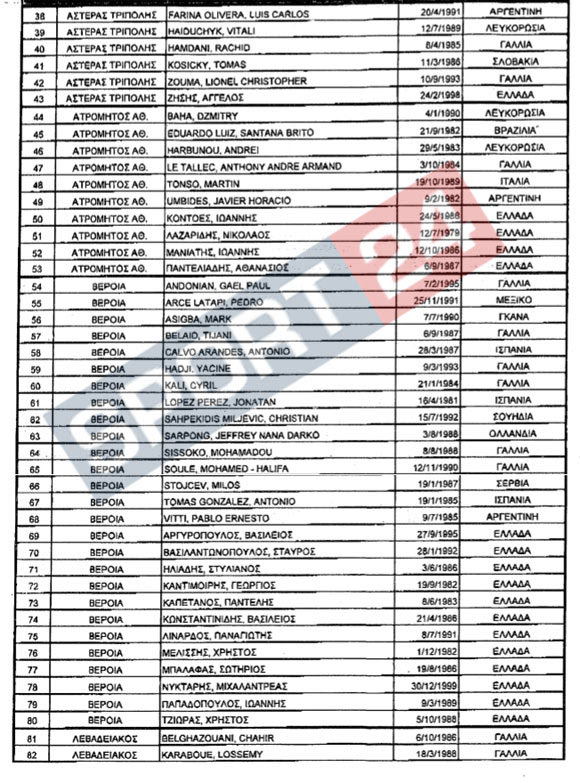 Στα νέα στοιχεία που φέρνουμε στη δημοσιότητα υπάρχουν και νεαροί ποδοσφαιριστές που είχαν γίνει επαγγελματίες και οι οποίοι δεν έχουν καταγράψει επίσημες συμμετοχές στο πρωτάθλημα της πρώτης κατηγορίας. Η ομάδα με τους περισσότερους ελεύθερους είναι η Βέροια, που υποβιβάστηκε.