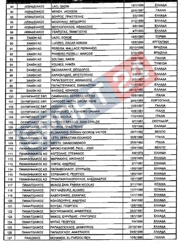 Εντύπωση επίσης προκαλεί στον Παναιτωλικό ότι στη λίστα βρίσκεται το όνομα του Γιώργου Μύγα, αφού σύμφωνα με την ΠΑΕ ο παίκτης είχε ανανεώσει μέχρι το 2019.