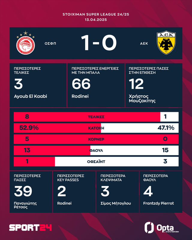 Ολυμπιακός – ΑΕΚ 1-0: Θρύλος, Θεός, 48ο στα 100 με απόλυτη κυριαρχία και σφραγίδα Ελ Κααμπί