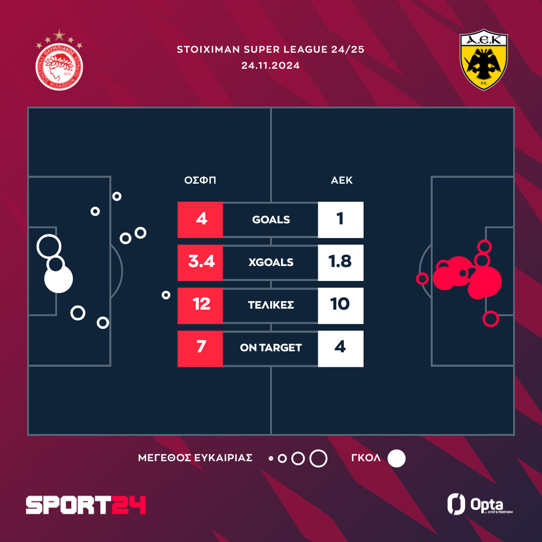 Στην βαθμολογία, ο Ολυμπιακός είναι στην κορυφή με 24 πόντους στο +1 από τον δεύτερο ΠΑΟΚ, με την ΑΕΚ να μένει στους 21 βαθμούς και να βρίσκεται στην 4η θέση της Stoiximan Super League.