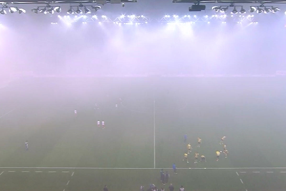 Το ντέρμπι μεταξύ του Ολυμπιακού και της ΑΕΚ ξεκίνησε με καθυστέρηση λίγων λεπτών λόγω του καπνού που υπήρχε στην ατμόσφαιρα από το άναμμα πολλών πυρσών.