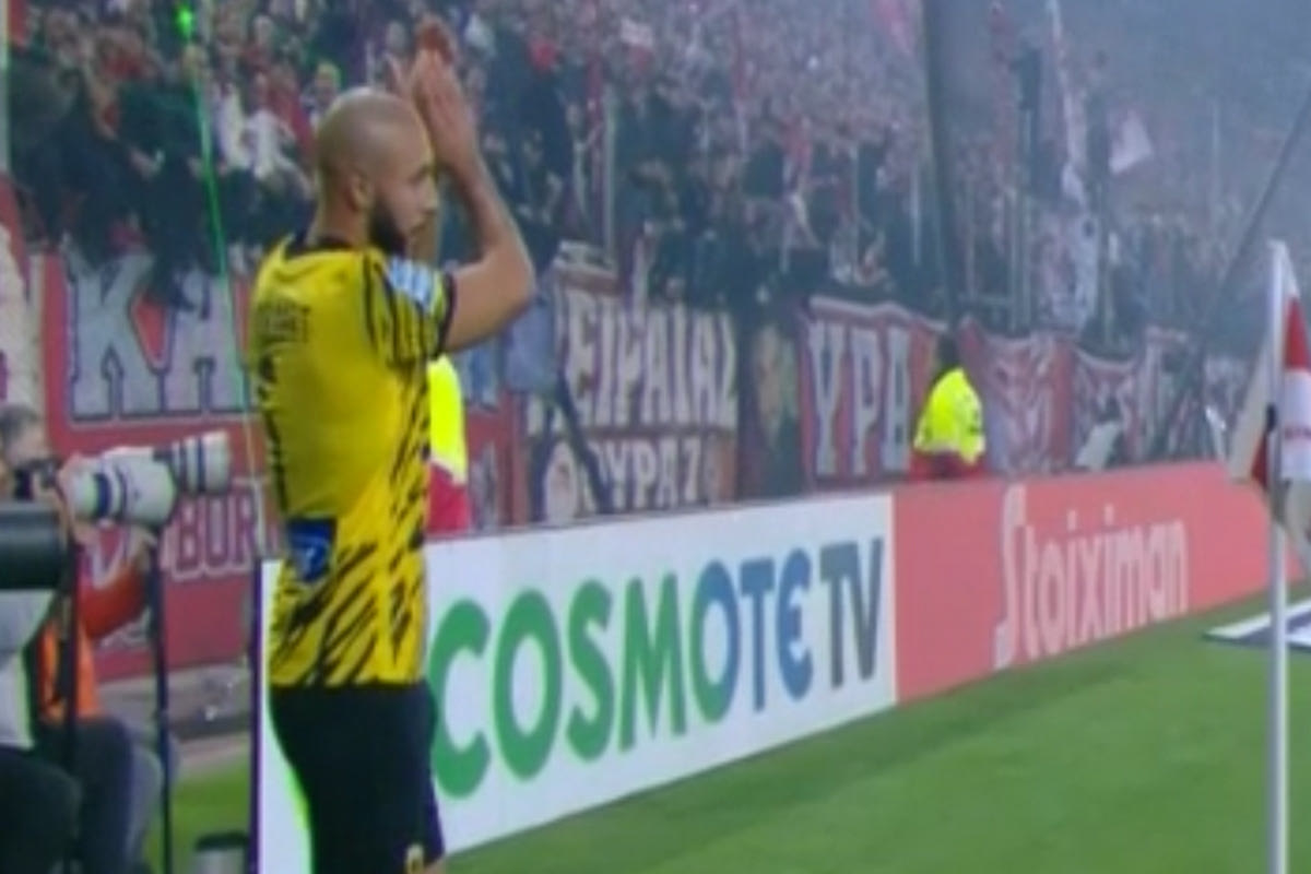 Ολυμπιακός – ΑΕΚ: Ο Άμραμπατ χειροκρότησε ειρωνικά τους οπαδούς των ερυθρολεύκων που τον σημάδευαν με λέιζερ
