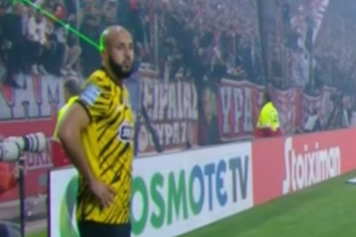 Ο Νορντίν Άμραμπατ εκνευρίστηκε με τους φίλους του Ολυμπιακού στο 17ο λεπτό του ντέρμπι με την ΑΕΚ. Ο Μαροκινός μεσοεπιθετικός πήγε να εκτελέσει ένα κόρνερ από τα αριστερά και εκείνοι τον σημάδευαν με λέιζερ. Εκείνος γύρισε προς το μέρος τους και τους χειροκρότησε ειρωνικά για την κίνησή τους.