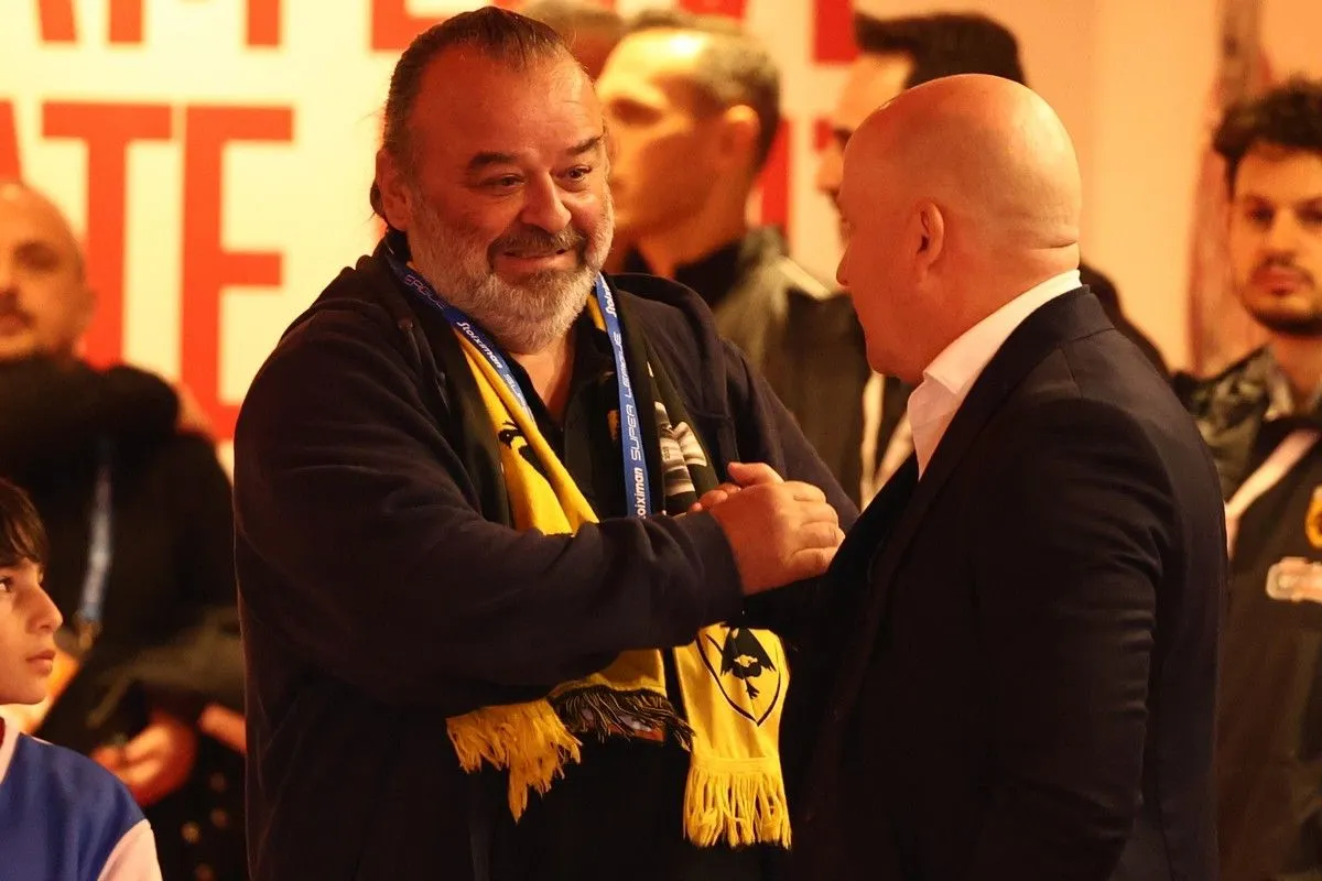 Ο ισχυρός άνδρας της “κιτρινόμαυρης” ΠΑΕ έδωσε κανονικά το παρών στο “Γ. Καραϊσκάκης” για το ντέρμπι με τον Ολυμπιακό και μάλιστα πριν από την έναρξη του ματς κατέβηκε στα αποδυτήρια, χαιρέτησε τους παίκτες και φίλησε, όπως συνηθίζει, τον Μάρκο Νίκολιτς.